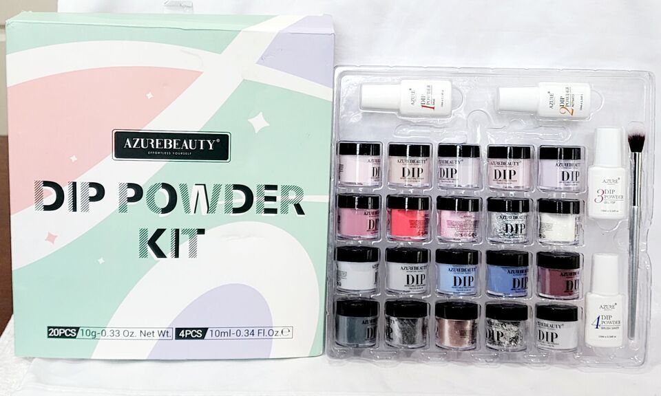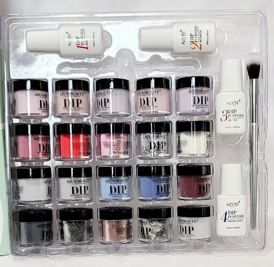 AzureBeauty DIP POWDER KIT Base Activator Top Gel Brush 25-Piece Set Nails New
