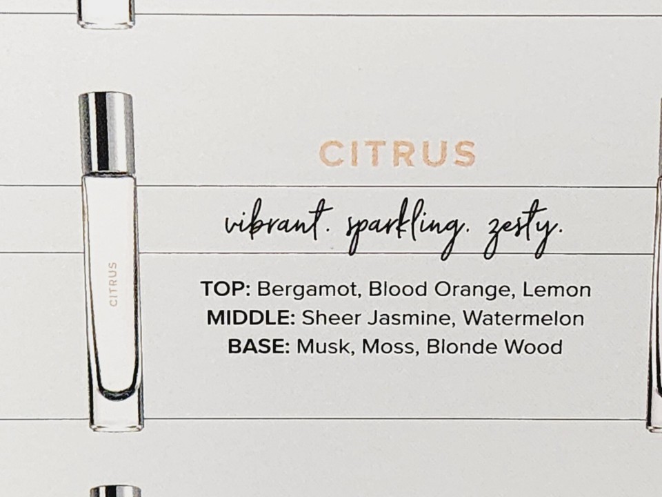 1 Brand New Unsealed and Unboxed Travel Size Glass Rollerball by Kirkland Signature Costco Warehouse CITRUS Rollerball Perfume Blending! Wear Alone or Layer to Create Endless Scent Possibilities! Rollerball for Travel/Purse! This Came from a 10-Piece Set Called "Kirkland Signature Perfume Blending Collection"! Original Formula! 100% Authentic! Discontinued Hard to Find! RARE!