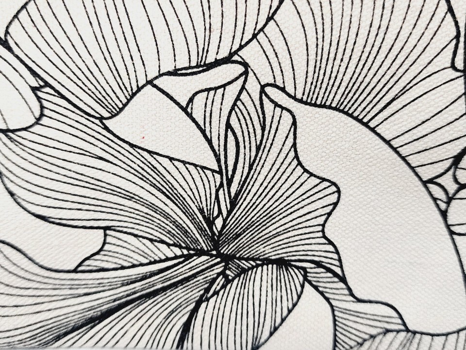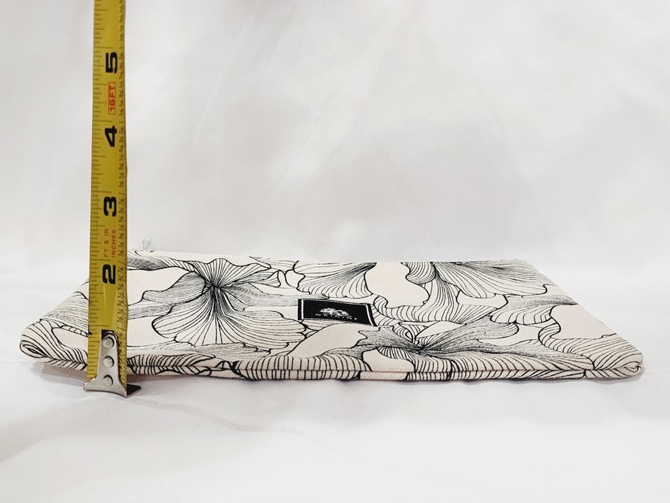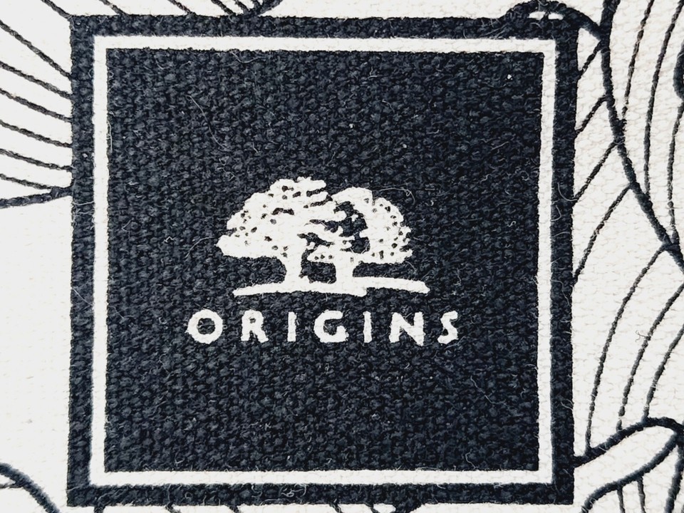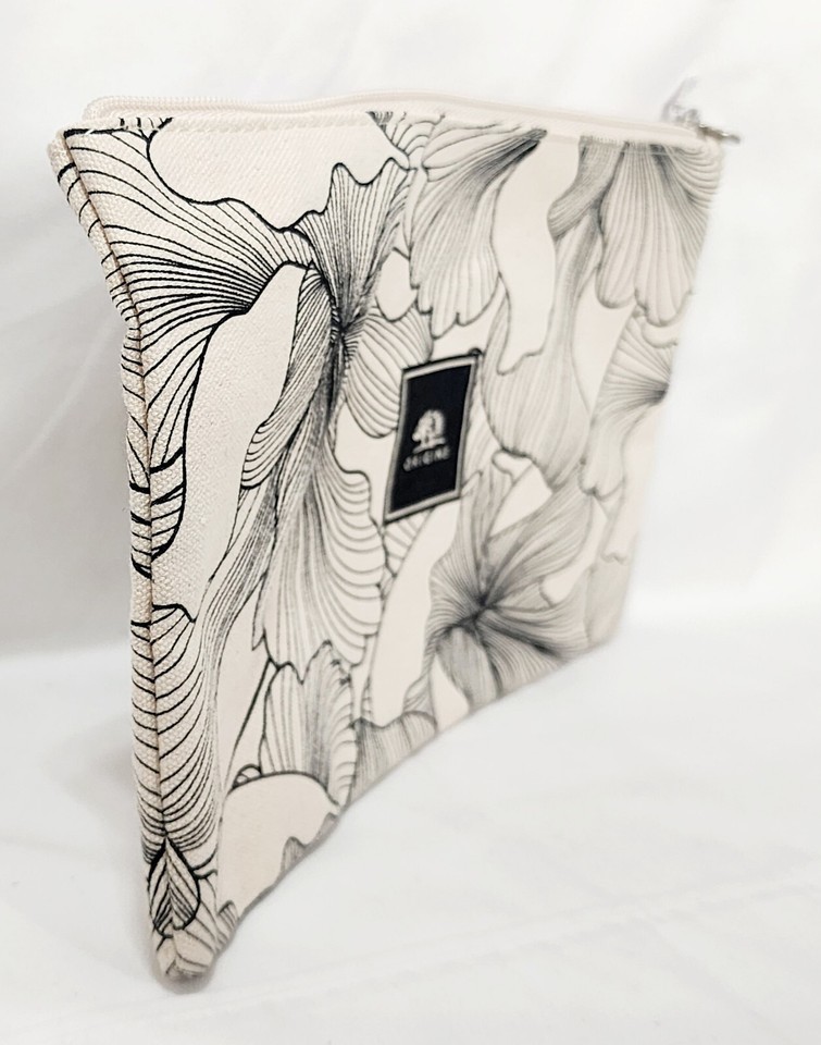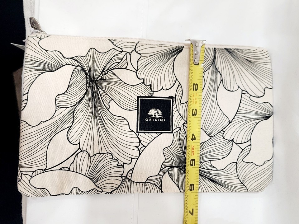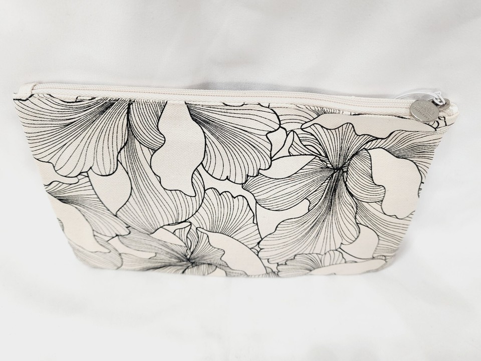Origins 100% COTTON BAG Cosmetic Travel Canvas Cream Beige Black Flower Zip New