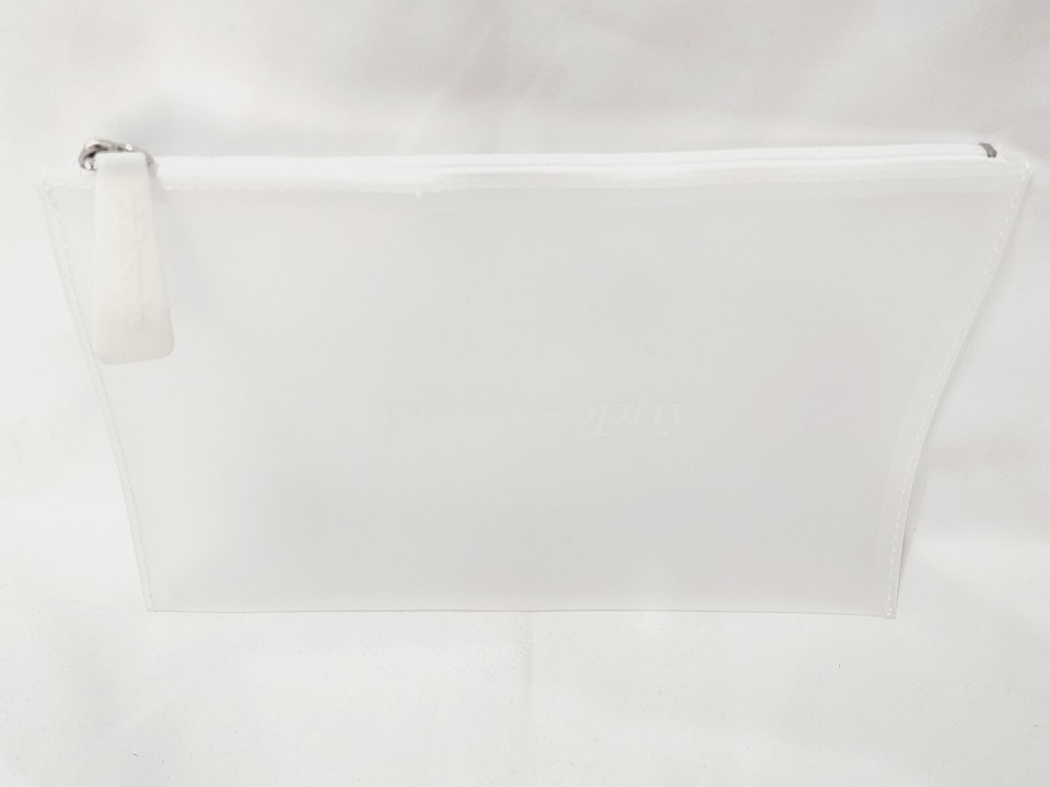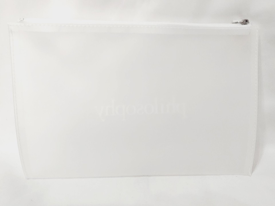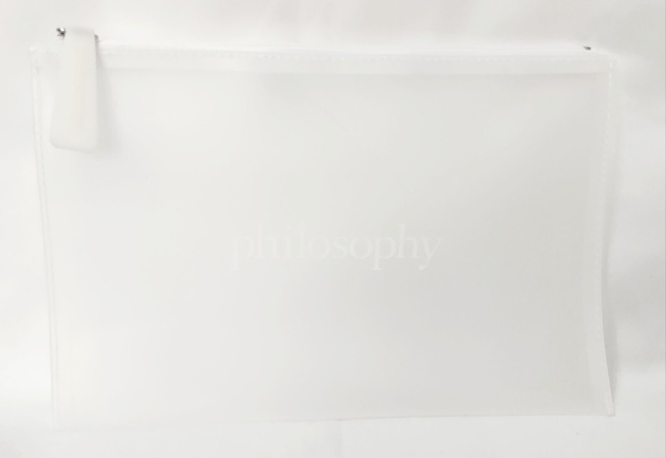 Philosophy LOGO FROSTED BAG White Clear Travel Cosmetic Plastic Zipper New RARE