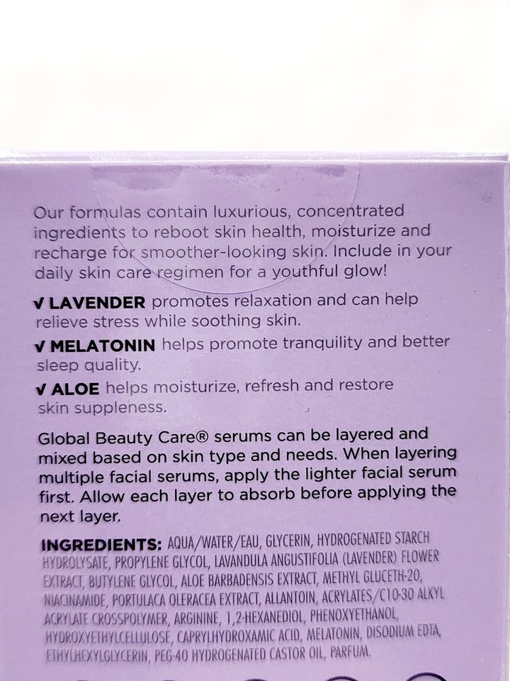 Global Beauty Care Calming Nighttime FACIAL SERUM Lavender Aloe 1 oz/30mL New