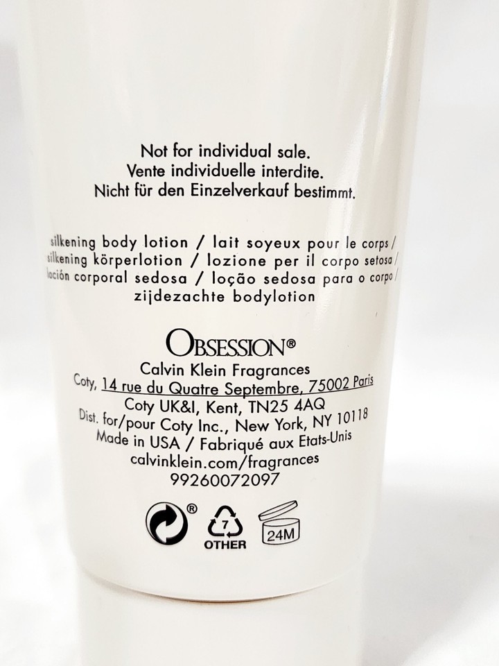 1 Brand New Unsealed and Unboxed Full Size Plastic Tube by Calvin Klein CK OBSESSION Silkening Body Lotion Fragrance for Women New! Original Formula! This Came from a 4-Piece Set! Reason why no box! Discontinued Hard to Find! RARE! 100% Authentic!