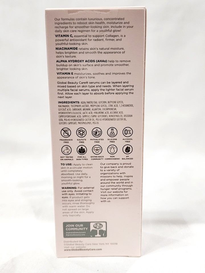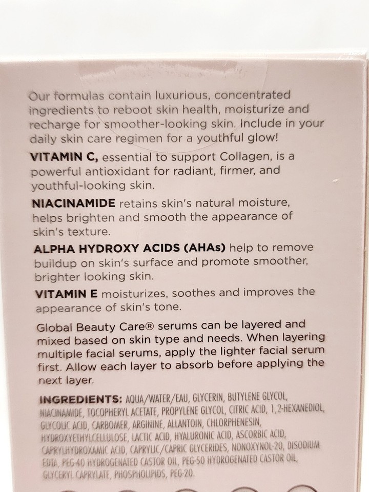Global Beauty Care Glowing Vitamin C FACIAL SERUM Niacinamide AHA 1 oz/30mL New