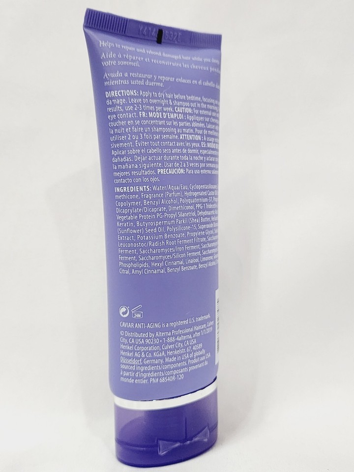 1 Brand New Unsealed Unboxed Full Size Tube by Alterna Caviar Anti-Aging Restructuring Bond Repair LEAVE-IN OVERNIGHT SERUM Strengthens Protects Damaged Hair Up To 450F/232C! Original Formula! Discontinued Hard to Find! 100% Authentic! RARE!