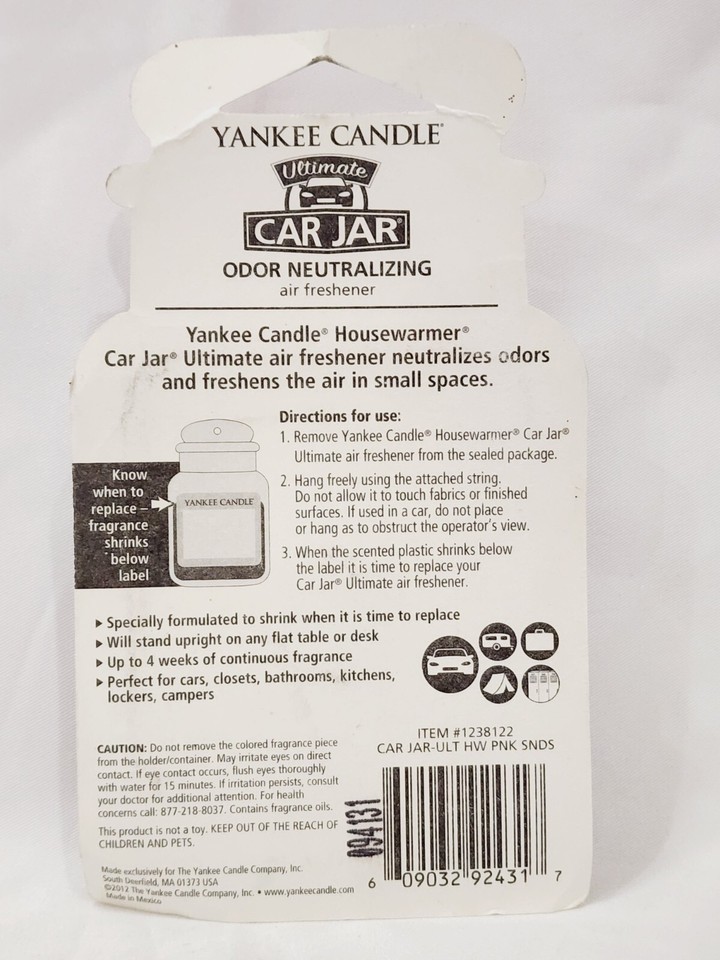 1 Brand New Factory Sealed Package Travel Size car Jar by Yankee Candle PINK SANDS Air Freshener Ultimate Car Jar House warmer! Odor Neutralizing! Original Formula! Discontinued Hard to Find! 100% Authentic! RARE!