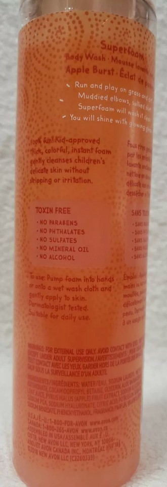 Avon Kids APPLE BURST Superfoam Body Wash Toxin-Free Liquid 8.4 oz/250mL New