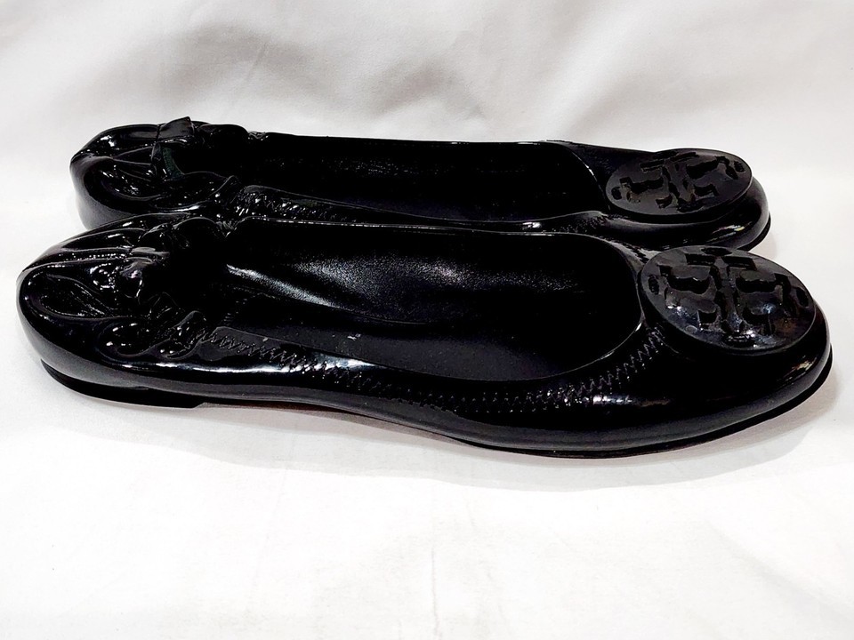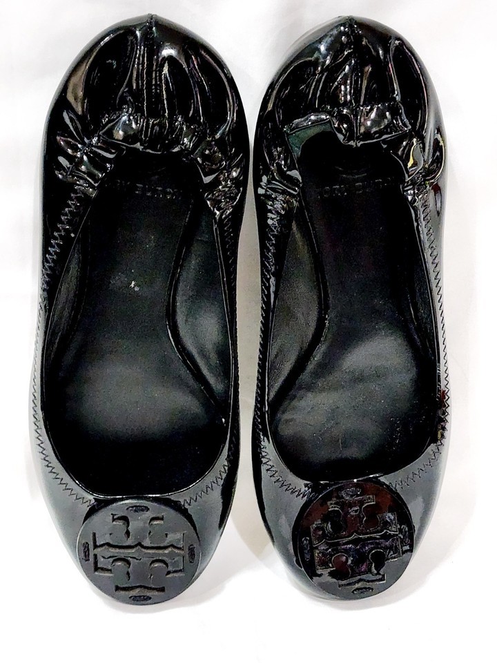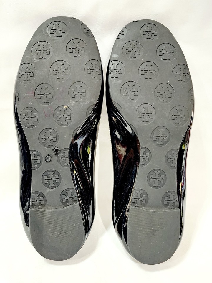 Tory Burch REVA Black Patent Leather Flat Ballet Black Logo Classic 6.5 M Used