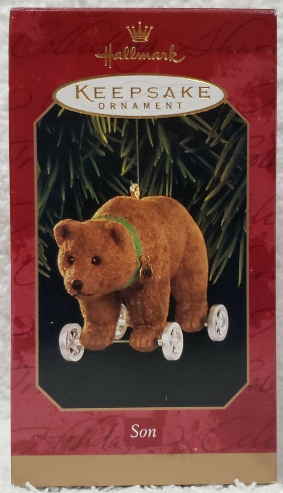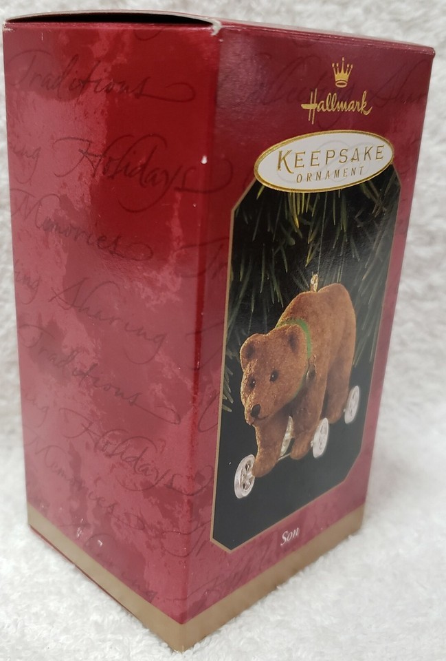 Hallmark Keepsake SON Fuzzy Brown Bear Wheels Joanne Eschrich Ornament 1999 New