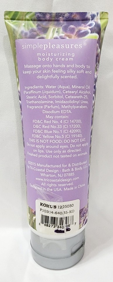 1 Brand New Unsealed Unboxed Full Size Tube by Simple Pleasures FRENCH LAVENDER Moisturizing Body Cream! Original Formula! 100% Authentic! Discontinued Hard to Find! RARE!