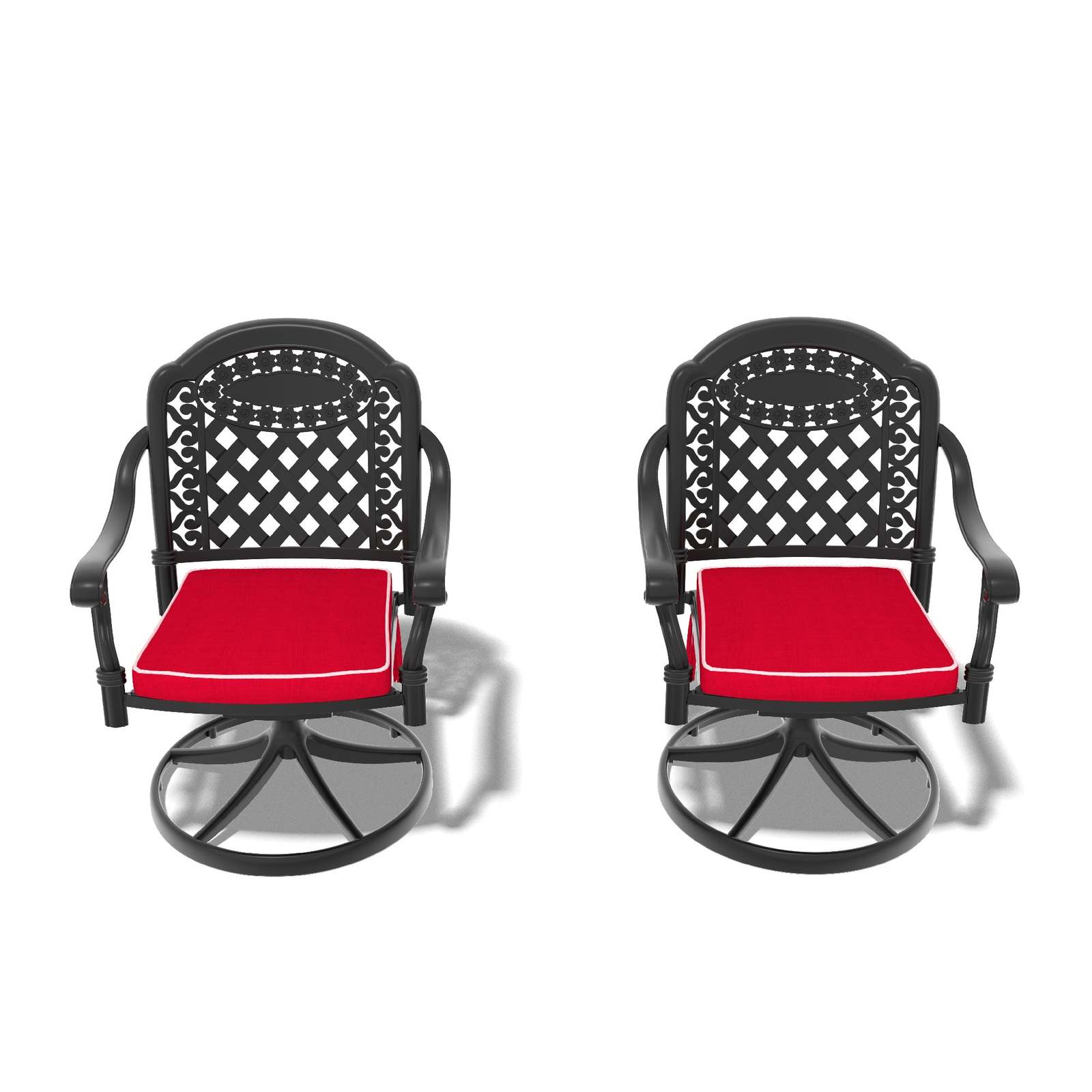 Cast Aluminum Patio Swivel Chairs 2PC - Black Frame & Random Cushions