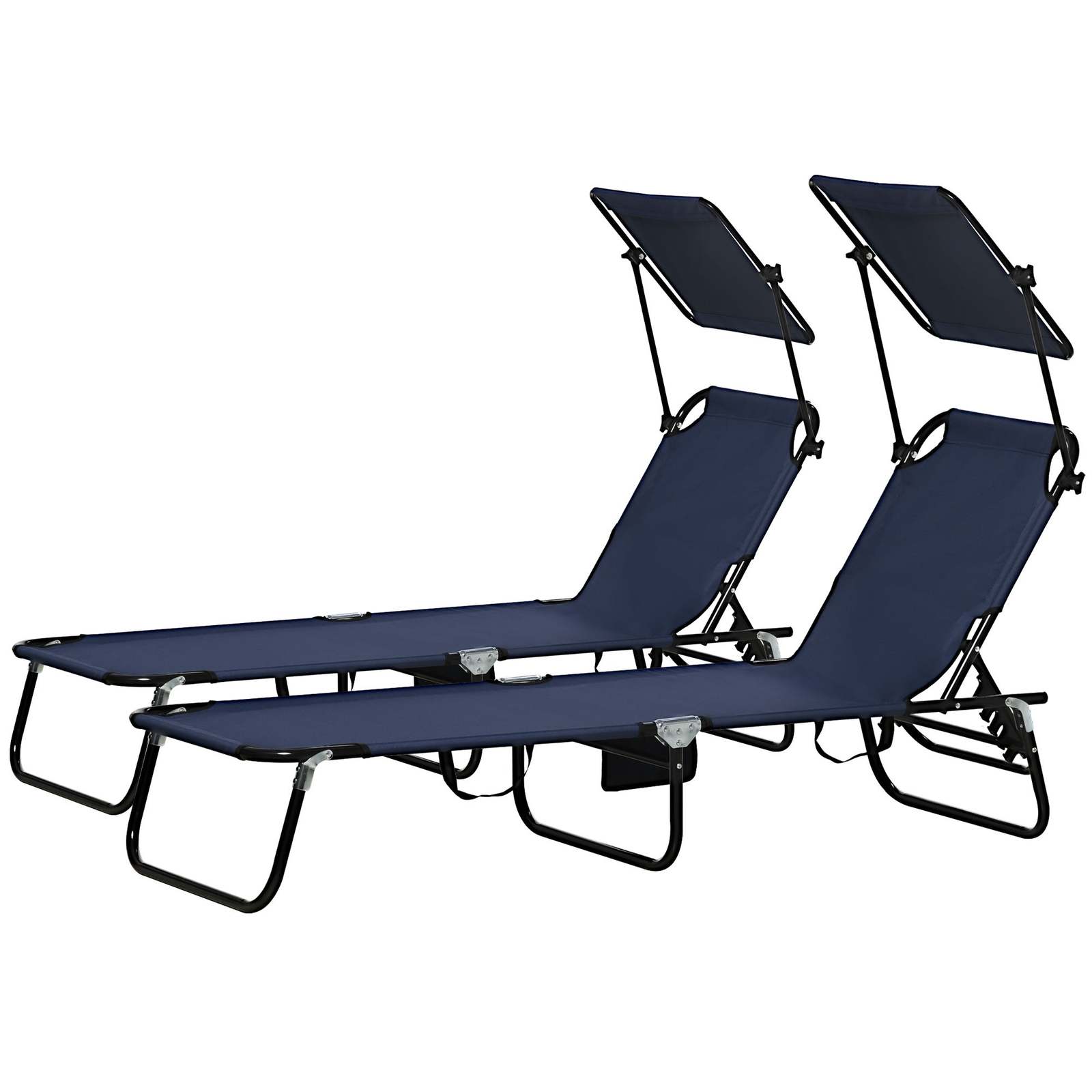 Outsunny Folding Chaise Lounge Pool Chair w/Canopy & Side Pocket