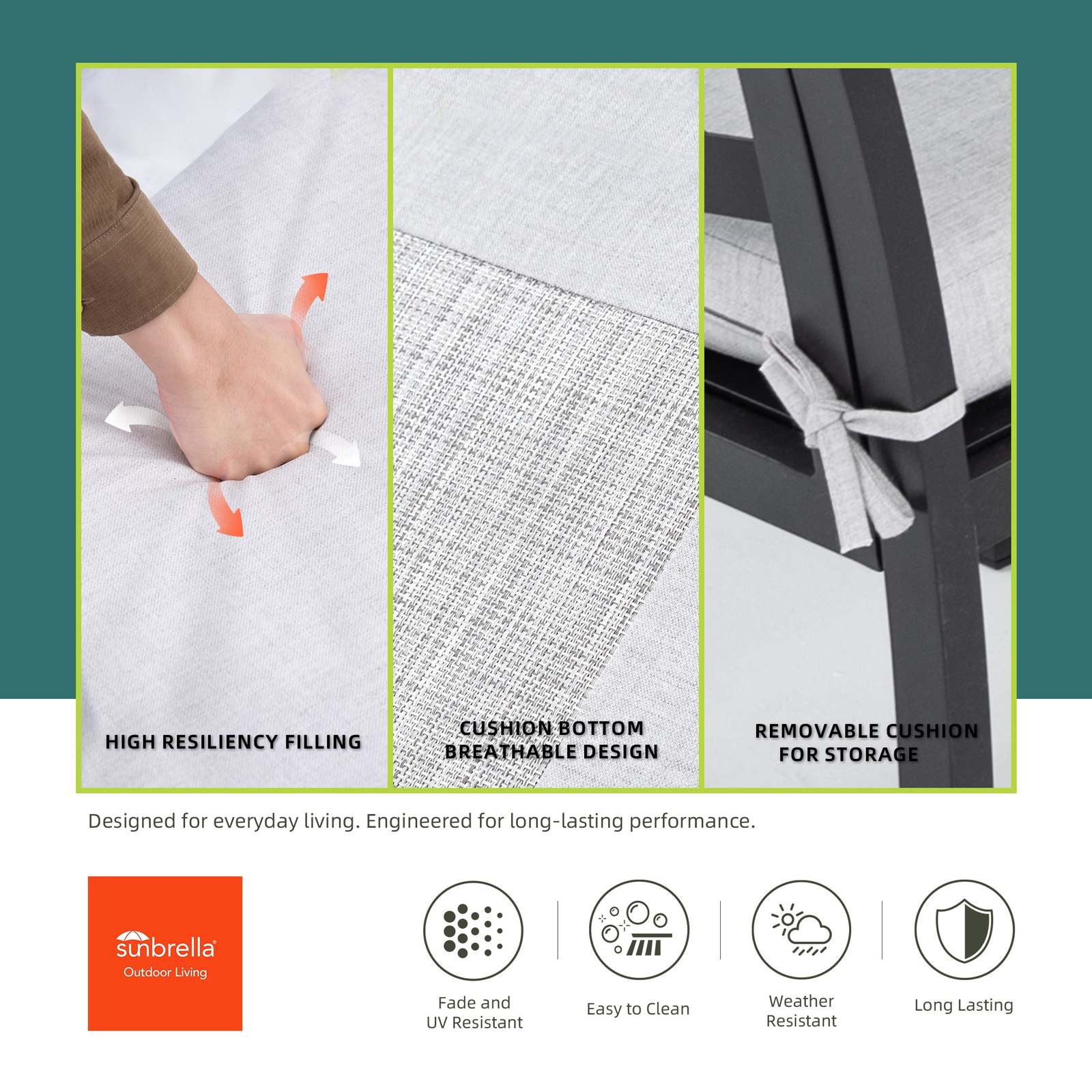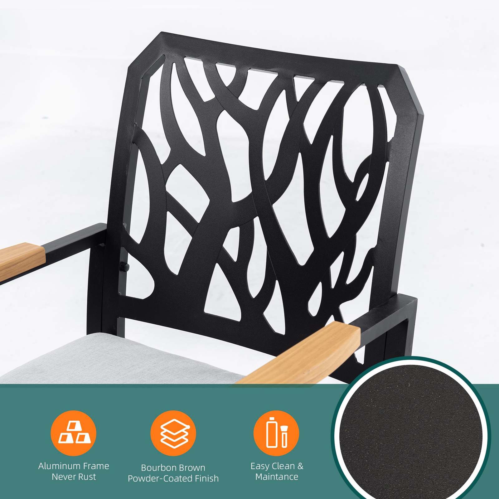 Constructed from high-grade aluminum, this chair is both durable and lightweight, making it ideal for outdoor use. The aluminum frame is never rust ,easy to clean, ensuring years of worry-free use. Durable structure that can withstand heavy loads .