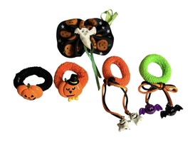 Fun Halloween-themed hair accessory lot! Includes 7 pieces: pumpkin, ghost, and bat designs on stretchy ties, barrettes, and novelty elastics. Great for kids? costumes, dress-up days, themed parties, or collectors of holiday hair accessories.