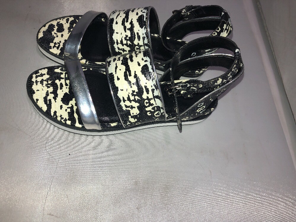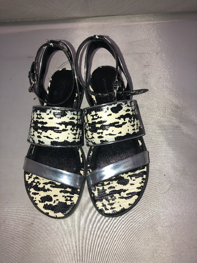 Pour La Victoire Sabina Ankle Strap Flat Sandals, Black/white/silver Size 6