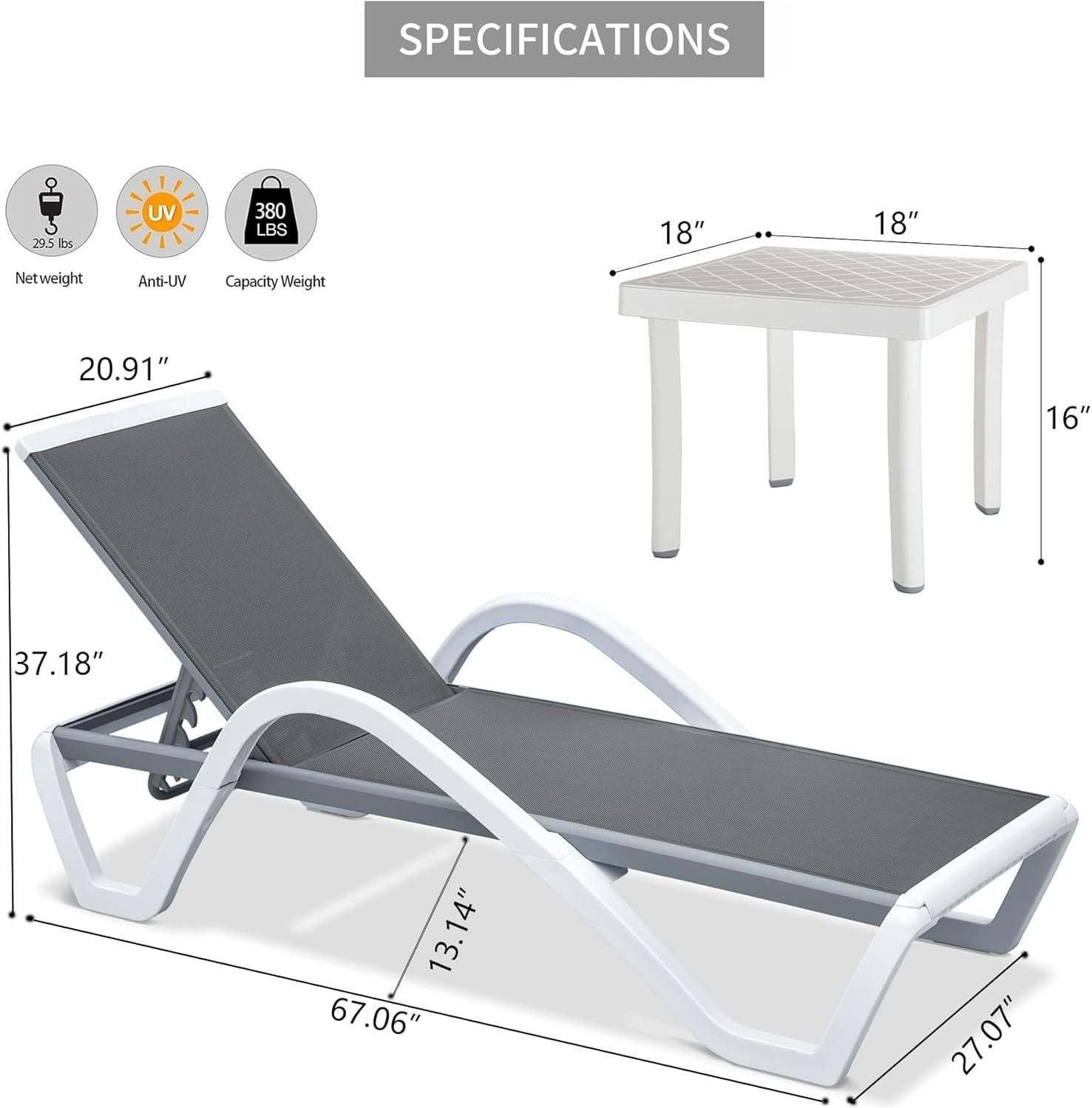 ?STURDY ALUMINUM FRAME?:Rust-resistant powder-coated Grey aluminum frame and white plastic triangular structure legs. The modern lounge chair support with max weight 350lbs.