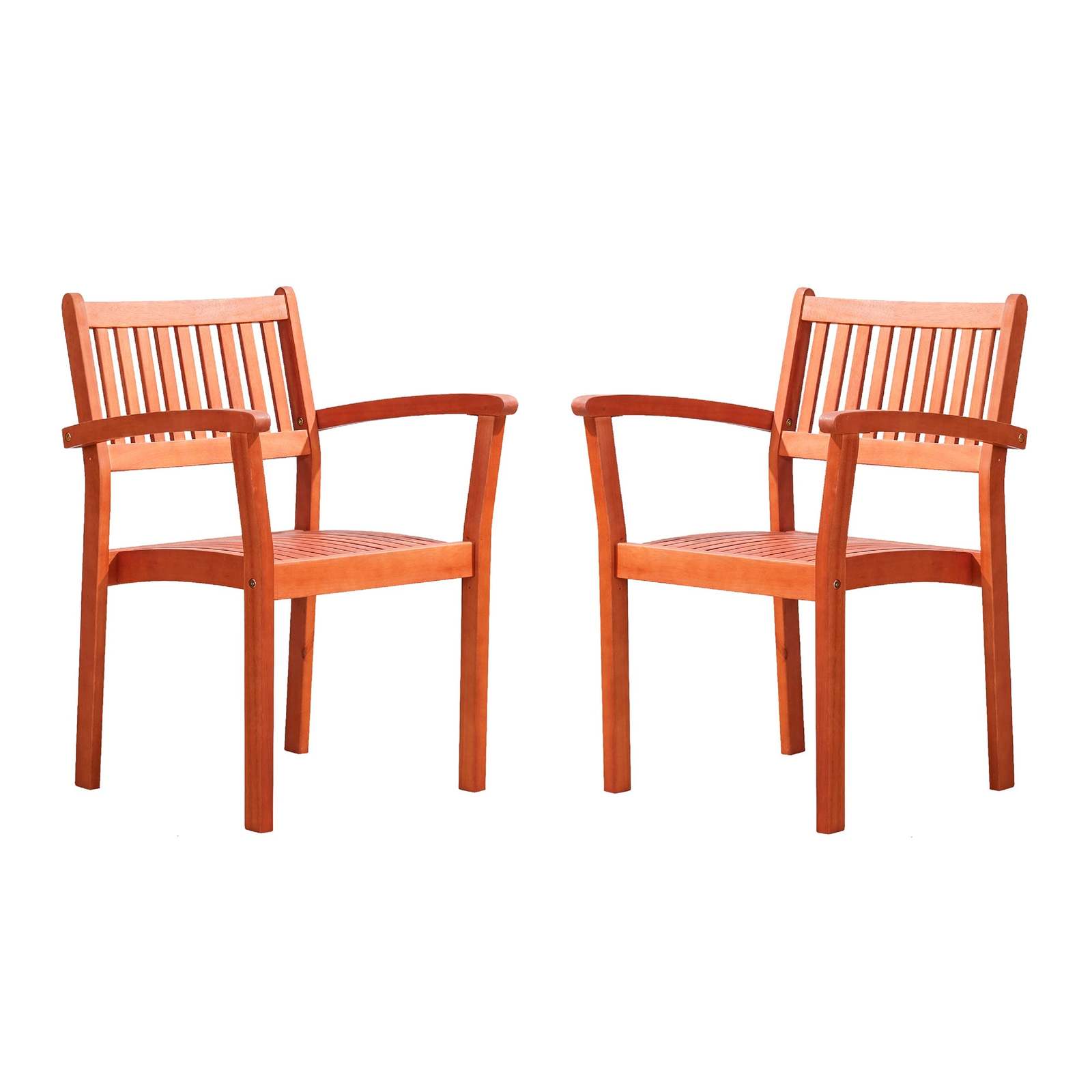 Caladesi Coastal Reddish Brown Wood Stackable Patio Armchairs 2-Set