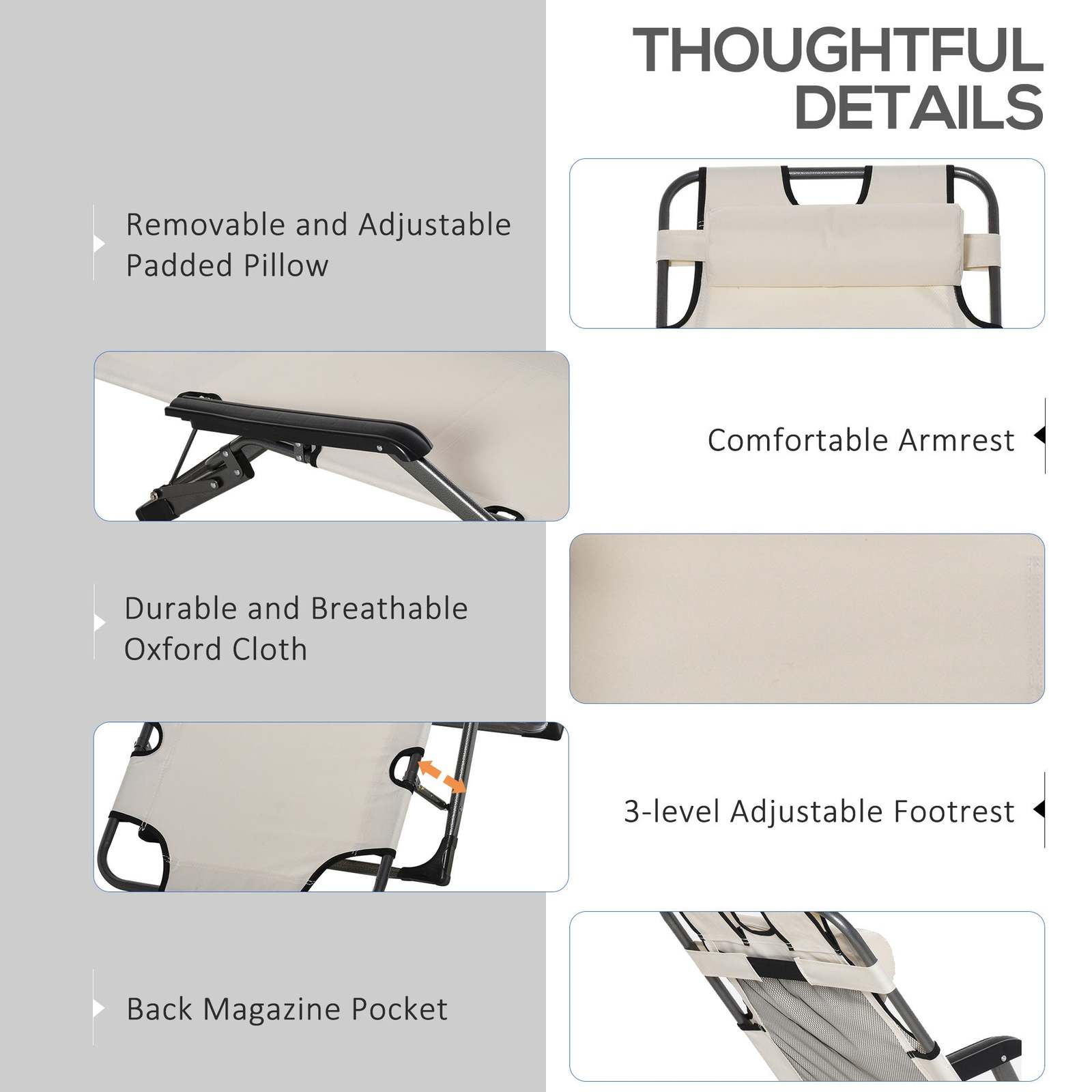 Outsunny Folding Chaise Lounge Chair: 2-in-1, Adjustable, Cream White