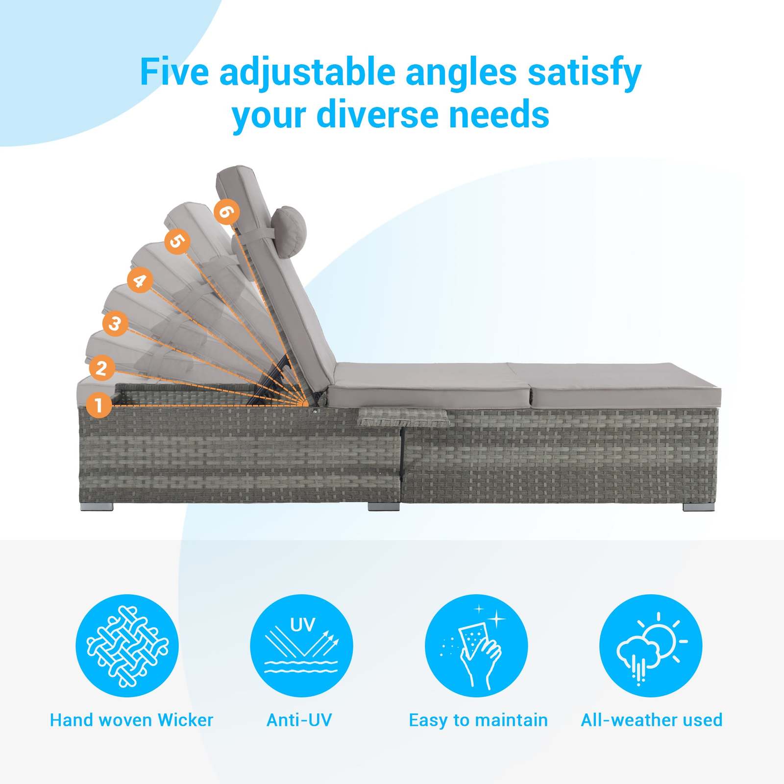 Outdoor Rattan Chaise Lounge Set of 2 | Adjustable Pool Patio Beach