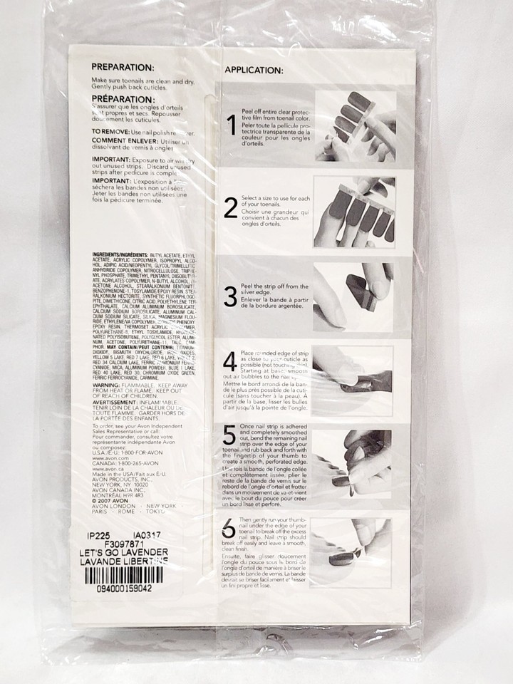 1 Brand New Factory Sealed Plastic Packaging Full Size by Avon Instant Pedicure LET'S GO LAVENDER 16-Dry Nail Enamel Strips Polis! Original Formula! Discontinued Hard to Find! 100% Authentic! RARE!