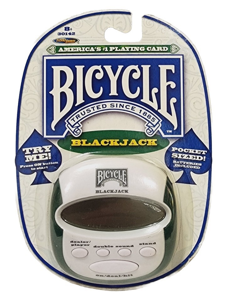 1 Brand New Factory Sealed *Damaged Package* Original Packaging Sealed in Plastic Package Regular Size Game by Techno Source Bicycle BLACKJACK Pocket Sized Electronic Handheld Game 2009! Packaging a Little Damaged! Batteries Dead! Collector's Item! Original! Discontinued Hard to Find! RARE! 100% Authentic!