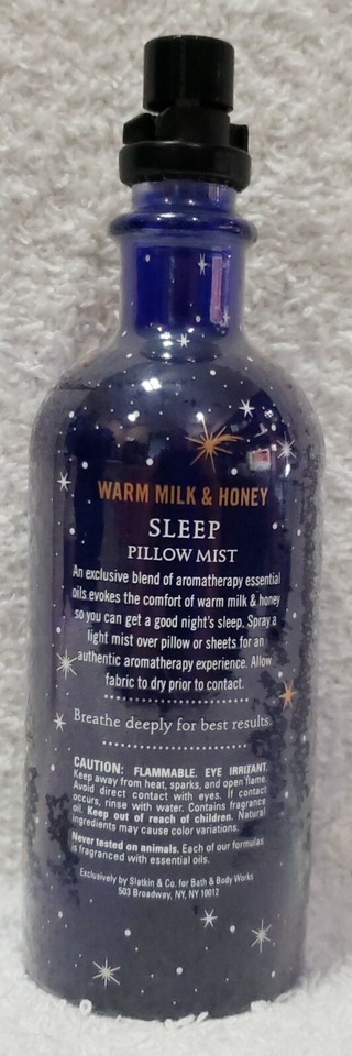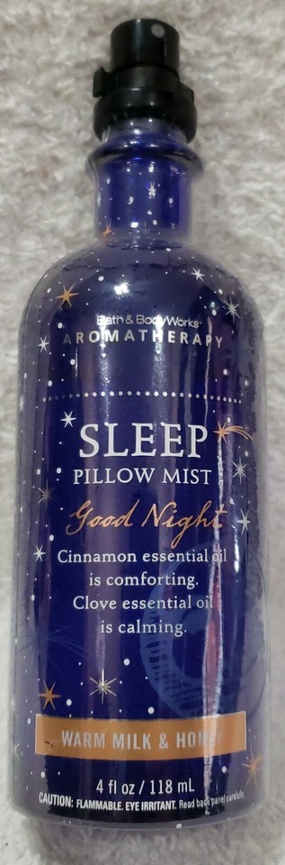 1 Brand New Unsealed/Unboxed Full Size Glass Spray Bottle by Bath Body Works Aromatherapy Sleep Pillow Mist WARM MILK HONEY Good Night Cinnamon Essential Oil is Comforting! Clove Essential Oil is Calming! Discontinued Hard to Find! 100% Authentic! RARE!