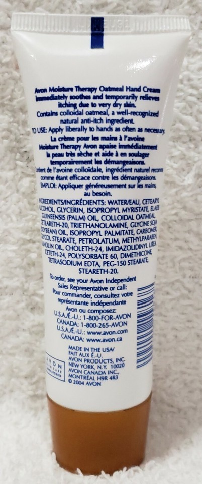 1 Brand New Unsealed Unboxed Travel Size Tube by Avon Moisture Therapy OATMEAL Hand Cream For Dry, Itchy Skin Soothes Skin! Original Formula! 100% Authentic! Discontinued Hard to Find! RARE!