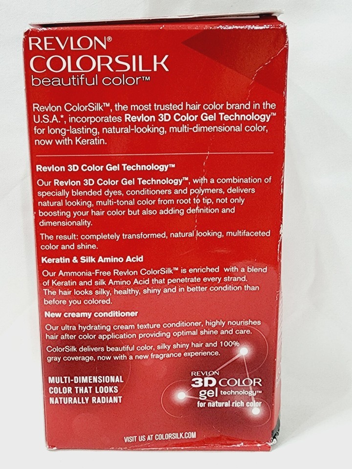 1 Brand New Factory Sealed In Original Box Full Size Kit/Set by Revlon ColorSilk Beautiful Color 54 LIGHT BROWN! 3D Color Gel Technology! Ammonia Free! Leaves Hair in Better Condition! With Keratin! Delivers Long Lasting High Definition Color Shine! Permanent Color 100% Gray Coverage! 1 Application! Original Formula! Discontinued Hard to Find! 100% Authentic! RARE!