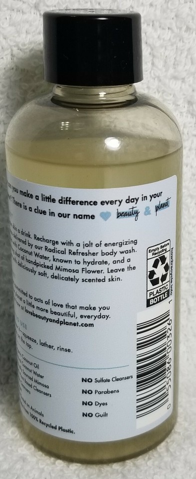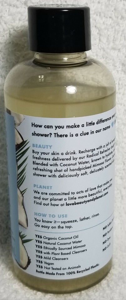 1 Brand New Unsealed/Unboxed Travel Size Bottle by Love Beauty and Planet Coconut Water Mimosa Flower RADICAL REFRESHER Body Wash for Energizing Freshness! 100% Authentic!