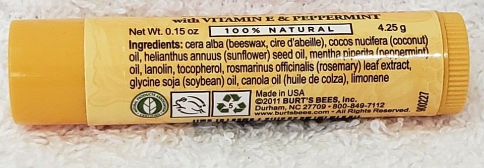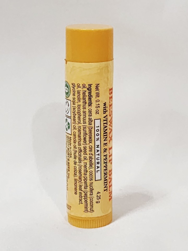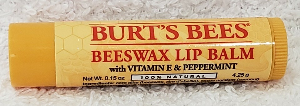 Burt's Bees Beeswax Lip Balm VITAMIN E PEPPERMINT Clear Natural .15 oz/4.25g New