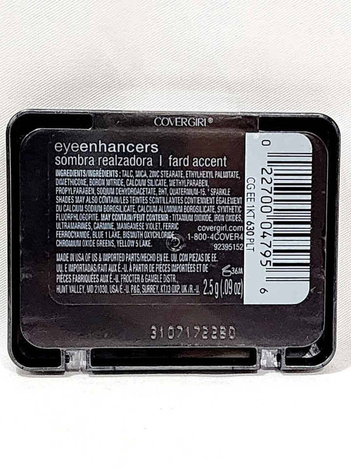 1 Brand New In Factory Sealed Unboxed Full Size Plastic Case by Covergirl #630 PLATINA Eye Enhancers Eyeshadow Fard Accent a Silver/Sheer Color! Original Formula! Discontinued Hard to Find! 100% Authentic! RARE!