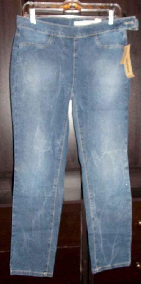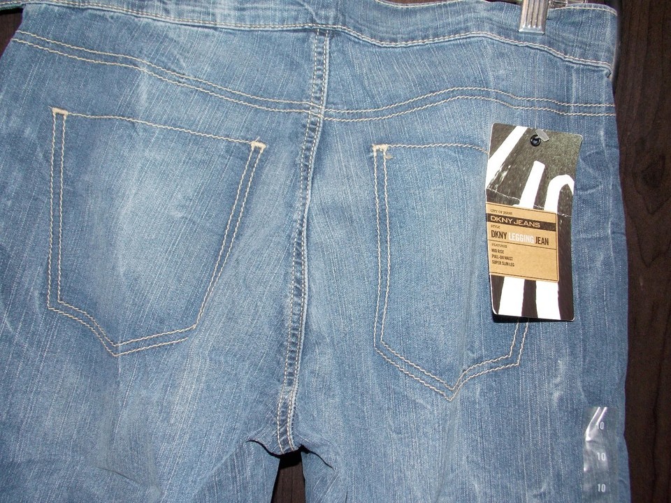 1 Brand New By DKNY LEGGING Jeans Mid Rise Pull On Waist Super Slim Leg Size 10 "!(blue bin pants 1)