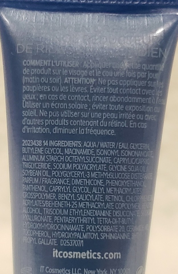 1 Brand New Unsealed Unboxed Travel Size Tube by IT Cosmetics + HELLO RESULTS Wrinkle-Reducing Daily Retinol Serum-In-Cream! 100% Authentic!