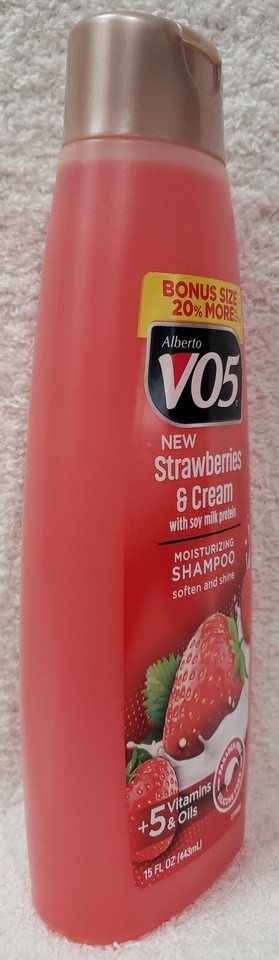 1 Brand New Unsealed/Unboxed Full Size Plastic Bottle by Alberto VO5 STRAWBERRIES CREAM With Soy Milk Protein Moisturizing Shampoo Soften and Shine! +5 Vitamins Oils! Original Formula! Discontinued Hard to Find! 100% Authentic! RARE!