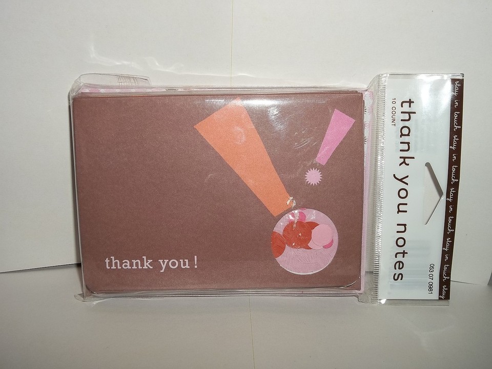10 Brand New In Package By "Stay In Touch THANK YOU NOTES! Brown Orange Pink Envelopes"!