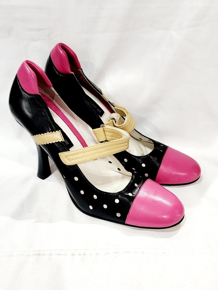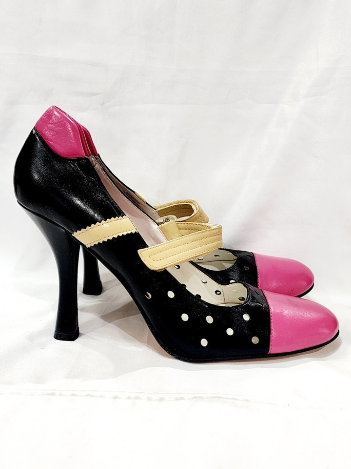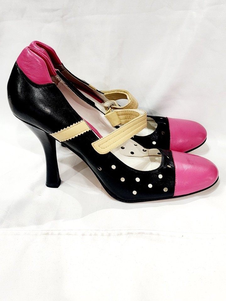 1 Pair No Box Pair BySteven BLACK PINK BEIGE Pump Leather Heels 10M For Women Used Heels (box #12)