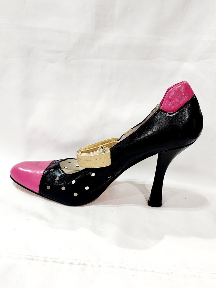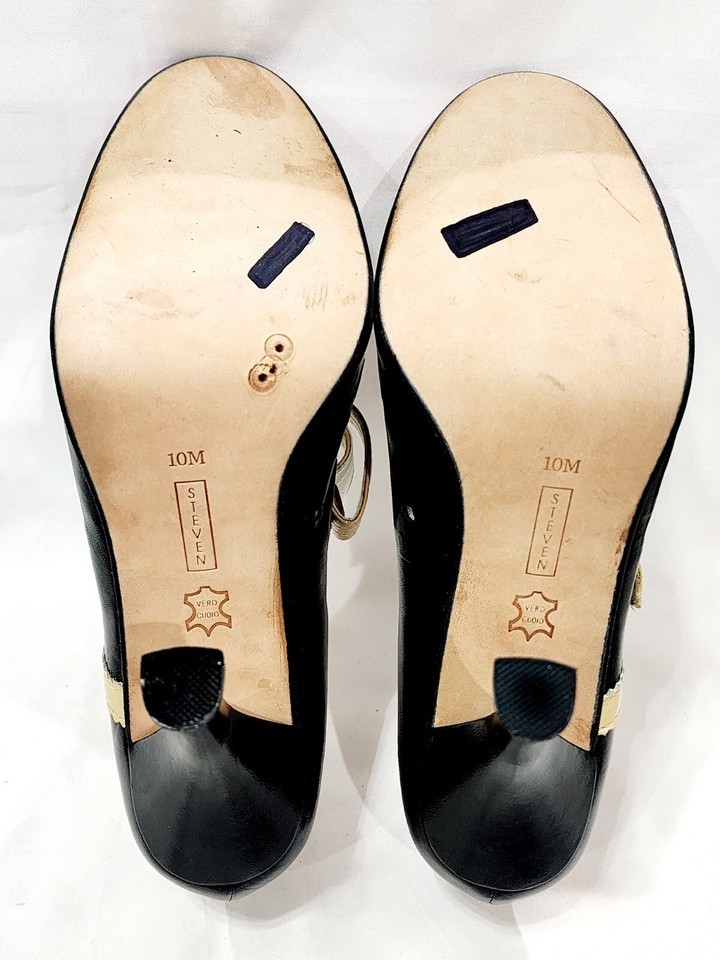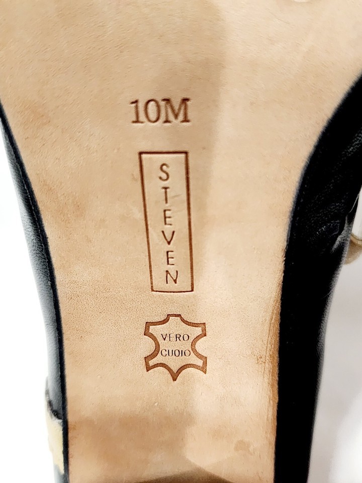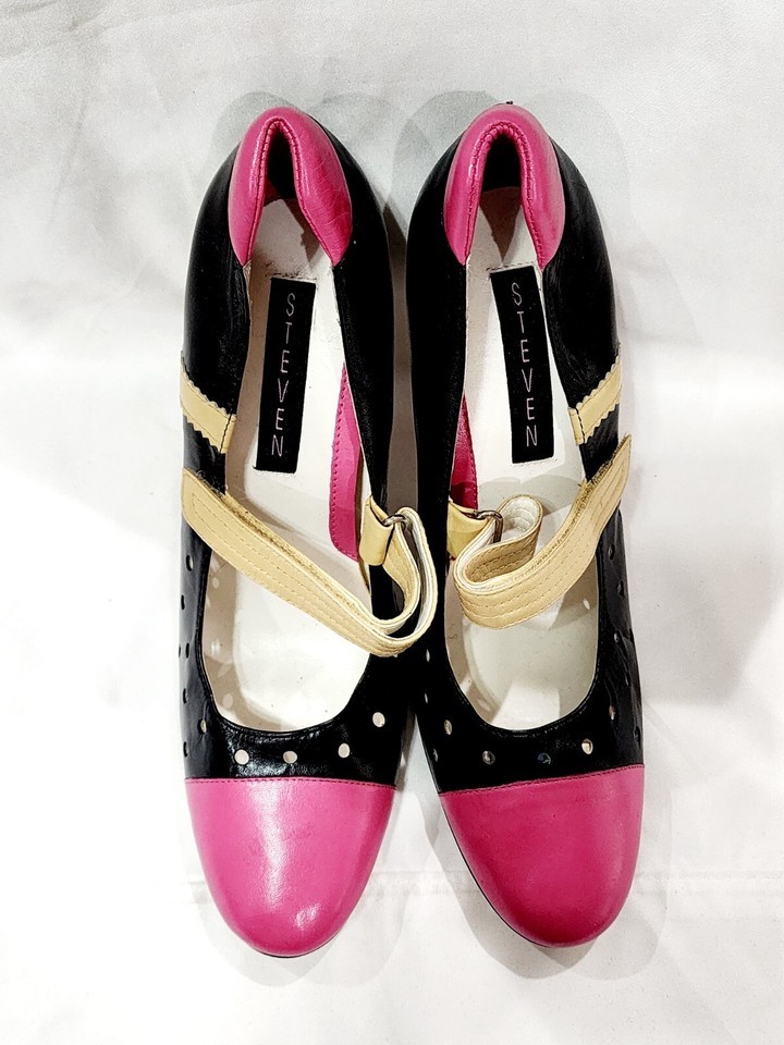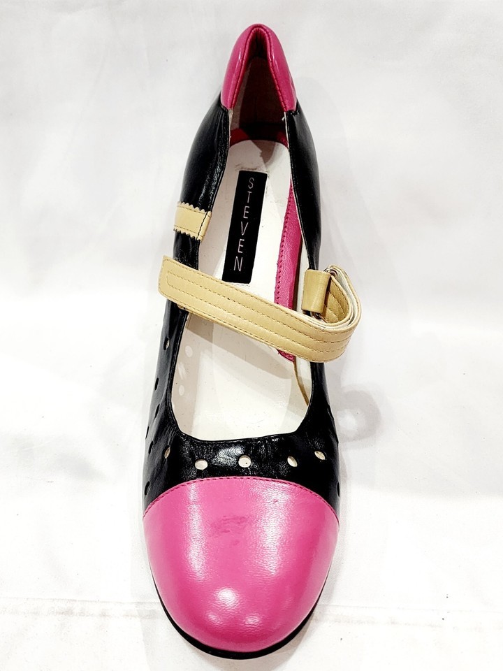 Steven BLACK PINK BEIGE Leather Heels Strap Pump Stiletto Shoes 10M Women Used