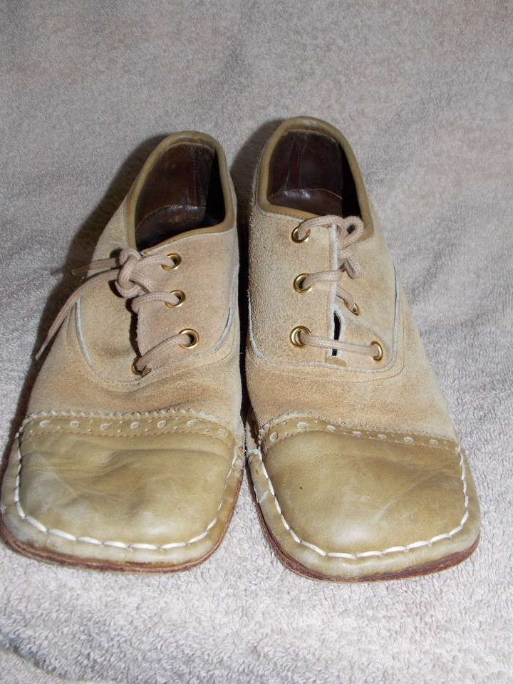 Circus Italy BOHO Hippie Suede Tan Captoe Loafers Heel Tie Lace Women 6.5B Used
