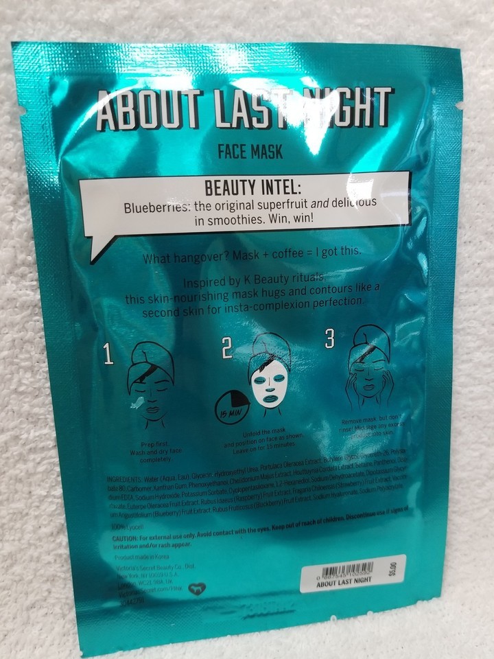 1 Brand New Factory Sealed Package by Victoria's Secret VS Pink ABOUT LAST NIGHT Face Mask Fake it Til you Wake Up with Blueberry! 100% Authentic!