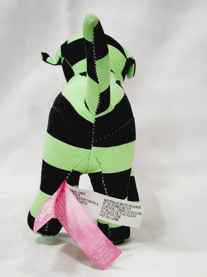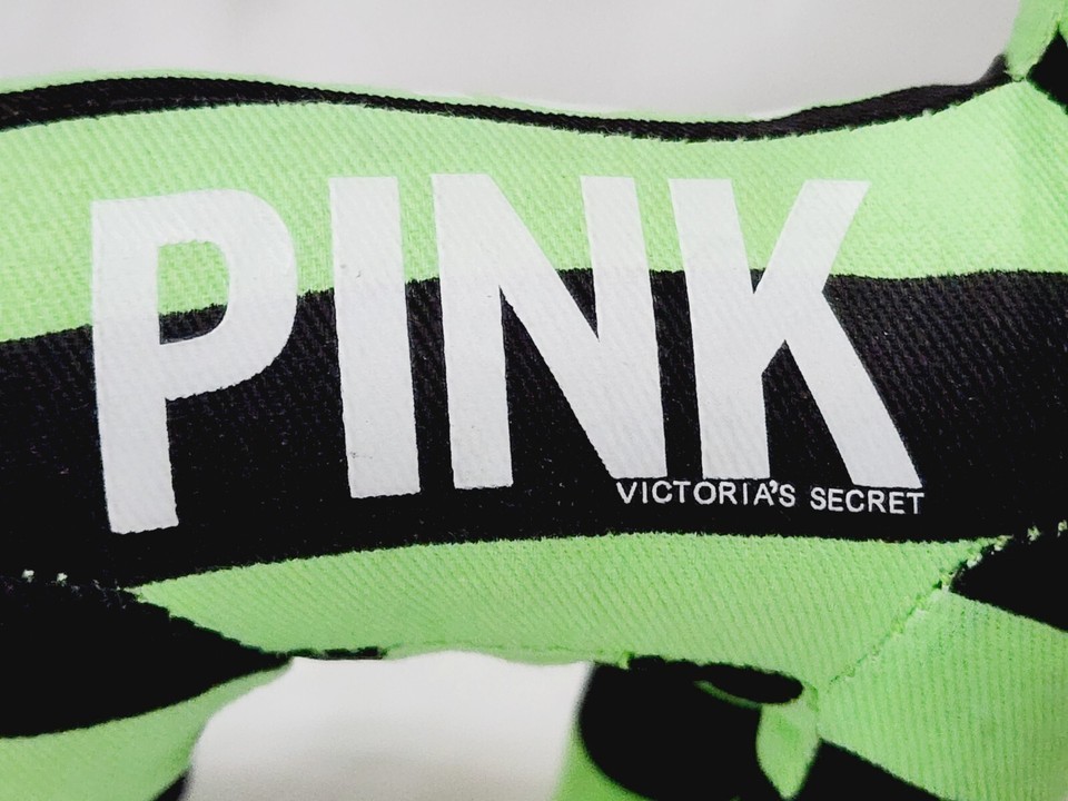 Victoria's Secret Pink PLUSH DOG "7 Stripe LIME GREEN Love Stuffed Animal Fabric
