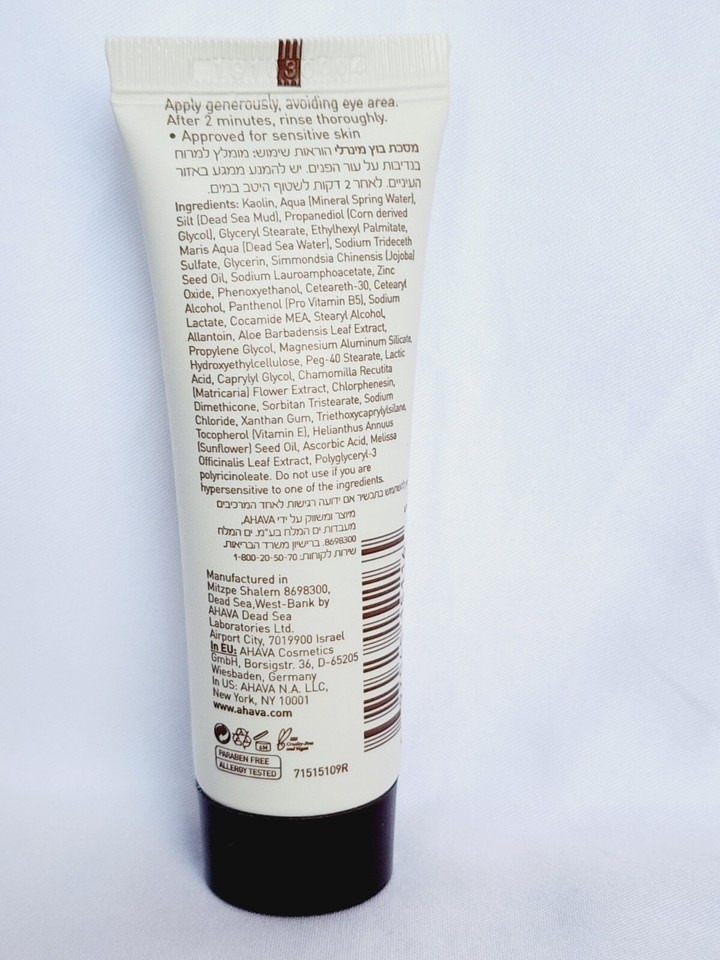 1 Brand New Unsealed Unboxed Travel Size Tube by Ahava Elemental Beauty From The Dead Sea Ahava Time To Clear PURIFYING MUD MASK Sensitive Skin Clear! Original Formula! 100% Authentic! Discontinued Hard to Find!