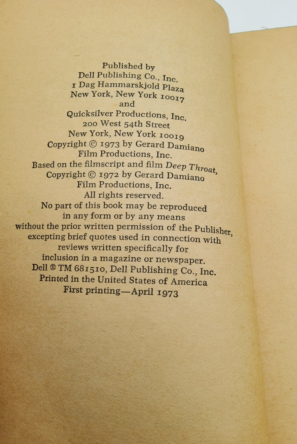 Deep Throat ~ First Print 1973 Paperback Novel Linda Lovelace D.M. Perkins Dell ~ Vintage Rare