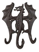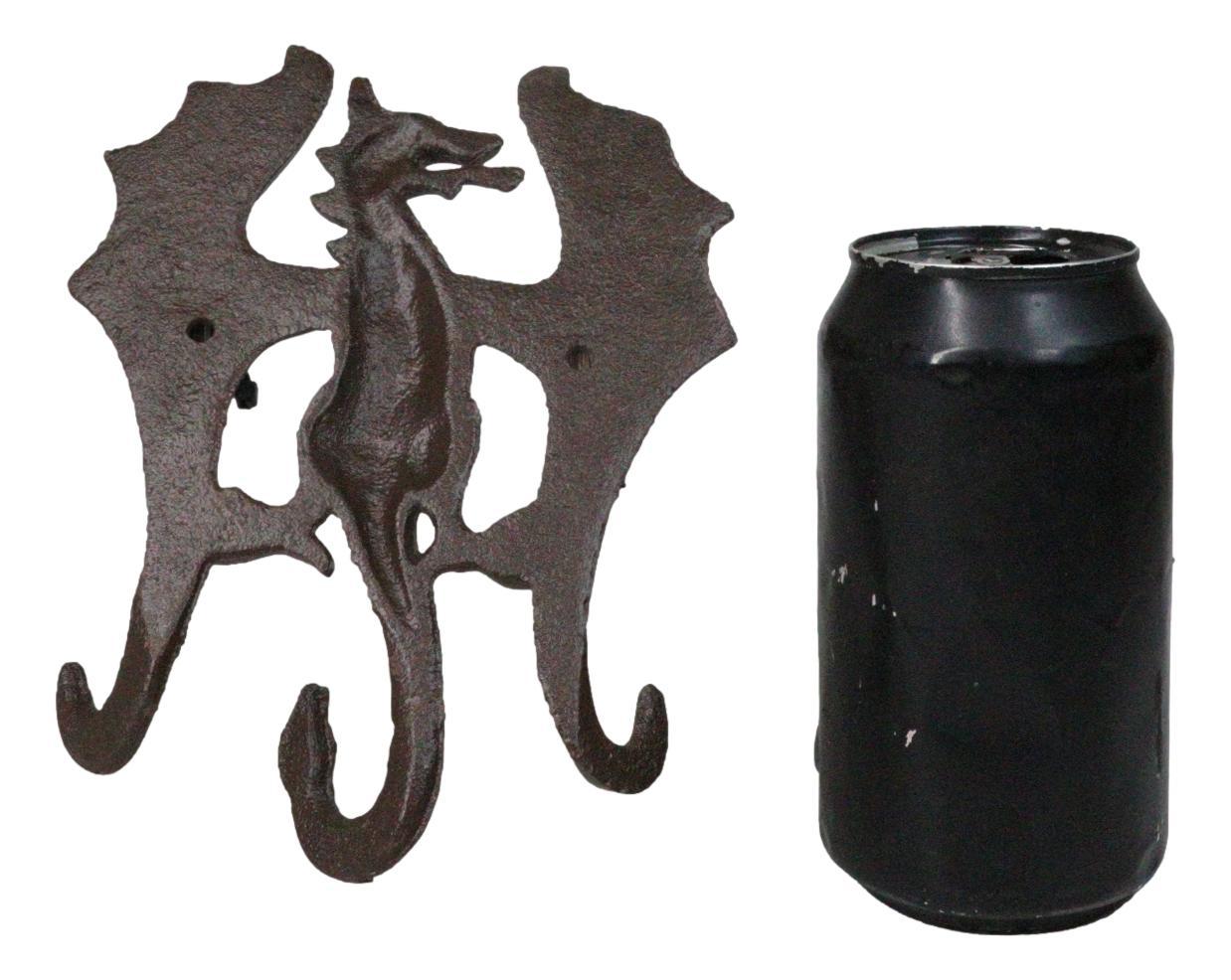 Pack Of 2 Cast Iron Rustic Fantasy Viking Beowulf Dragon 3Pegs Wall Keys Hook