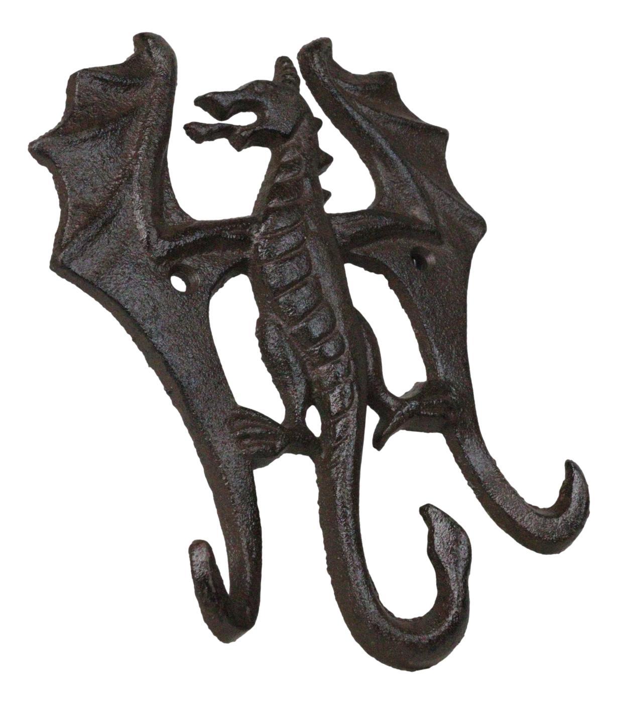 ? Unleash epic style and function with this Cast Iron Vintage Viking Dragon Wall Hook. Designed with a fierce dragon spreading its wings, this fantasy-inspired piece captures strength and legend while offering three sturdy pegs for hanging coats, hats, keys, or accessories. The rustic bronzed finish adds old-world character, making it a bold and practical statement piece for any entryway, study, or themed decor space.