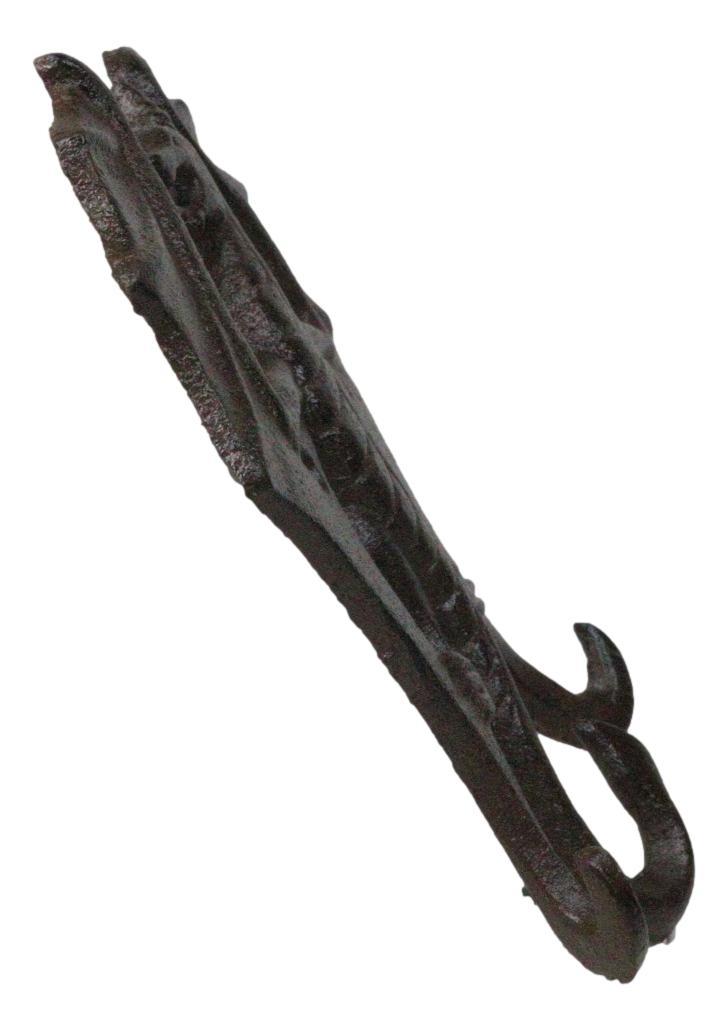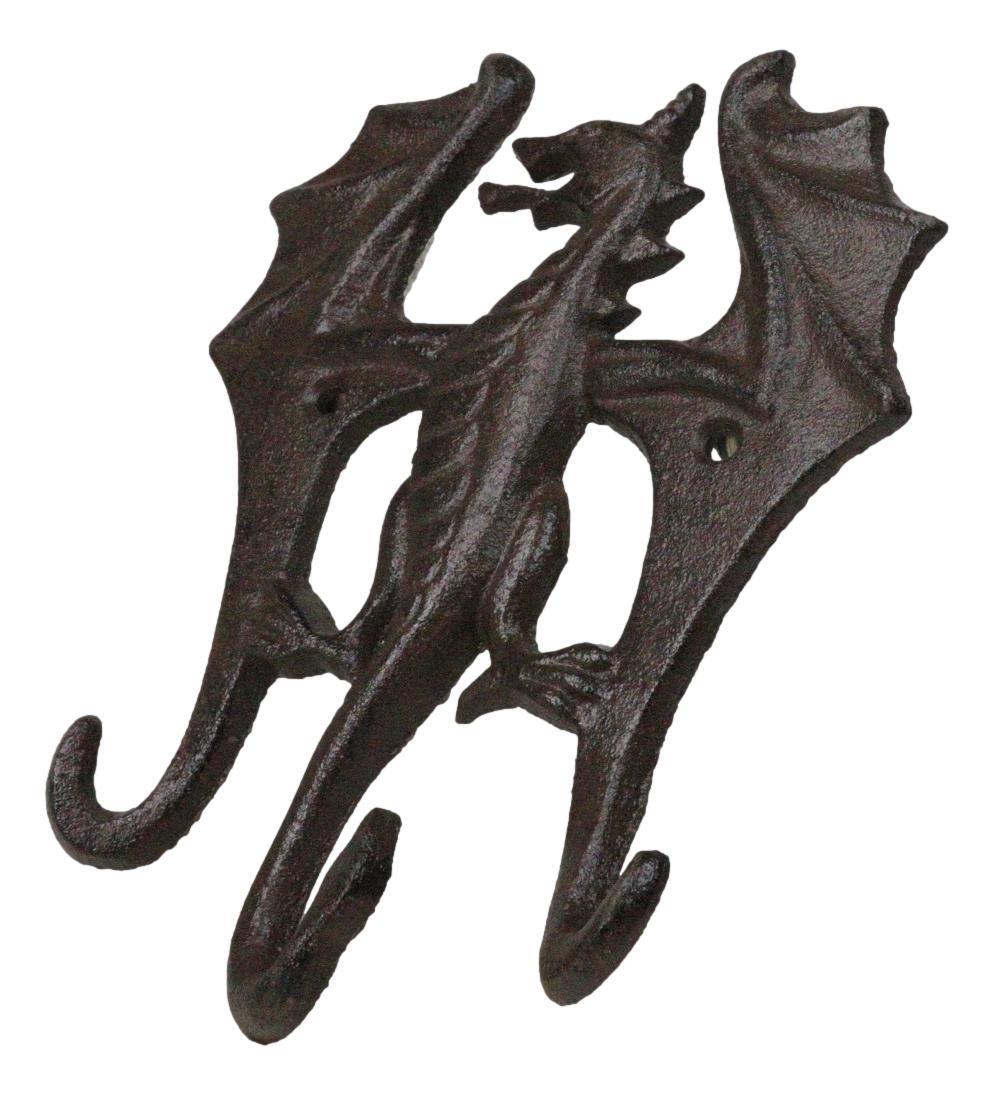 ? This Beowulf Dragon Wall Hook Sculpture is made of cast iron, hand painted and polished individually in vintage rust finish. It is recommended to anchor drywalls before hanging items on the hook. Hanging hardware not included.