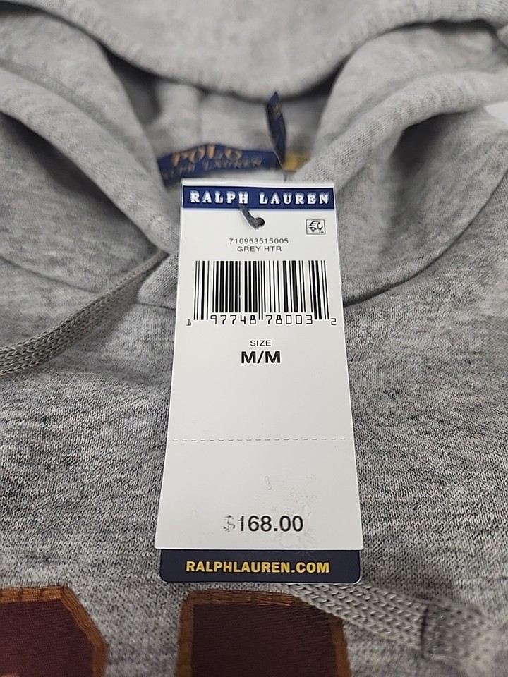 Polo Ralph Lauren Big Pony Pullover Hoodie Sweatshirt Size M Men's Gray Pockets