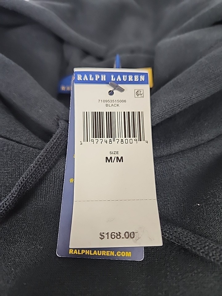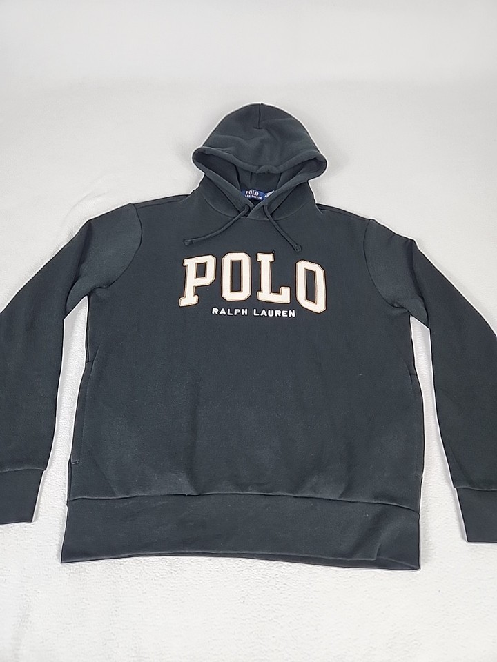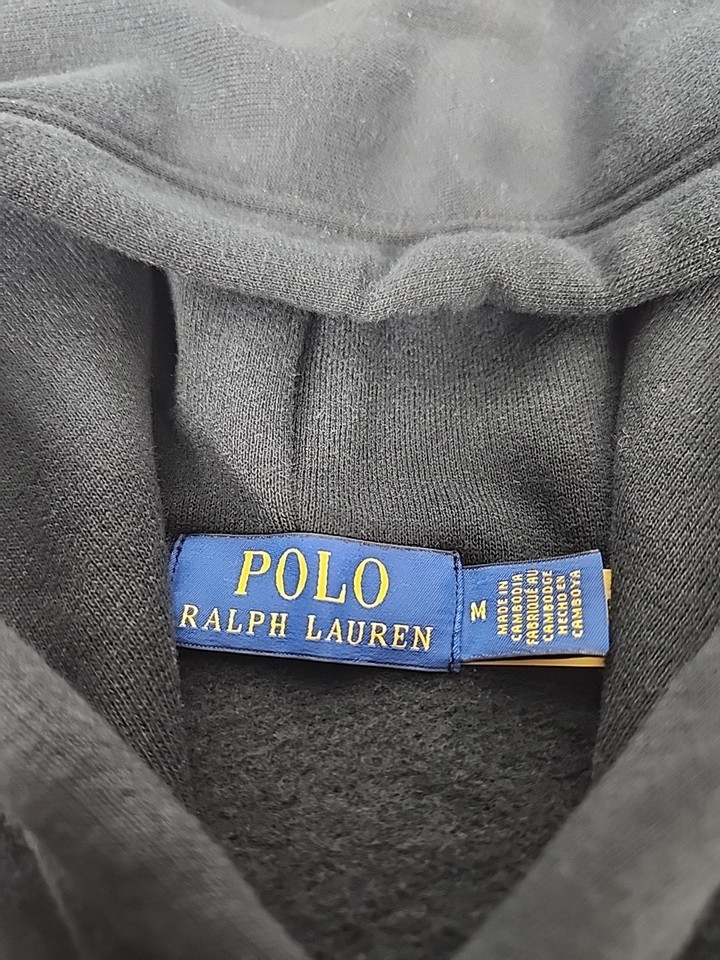 Polo Ralph Lauren Big Pony Pullover Hoodie Sweatshirt Size M Men's Black Pockets
