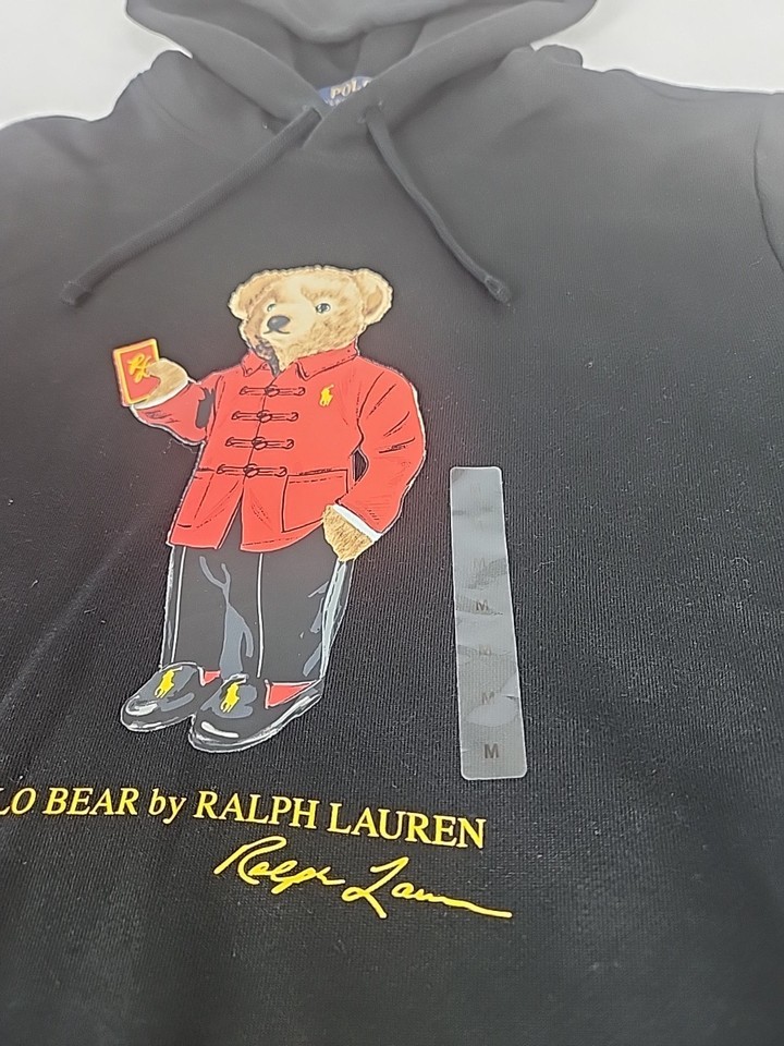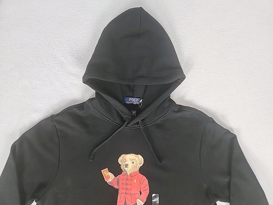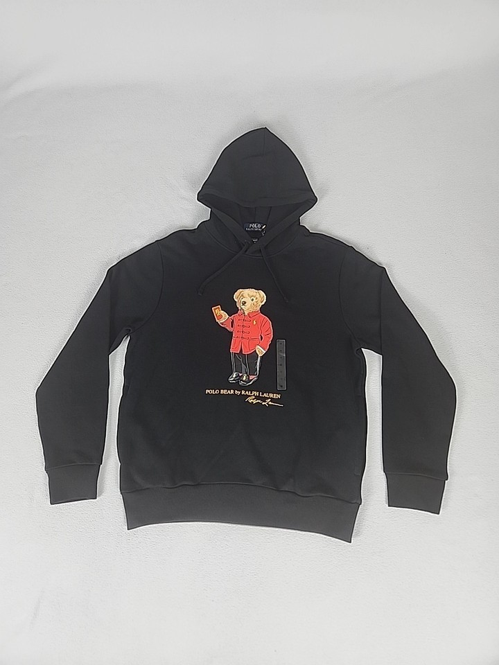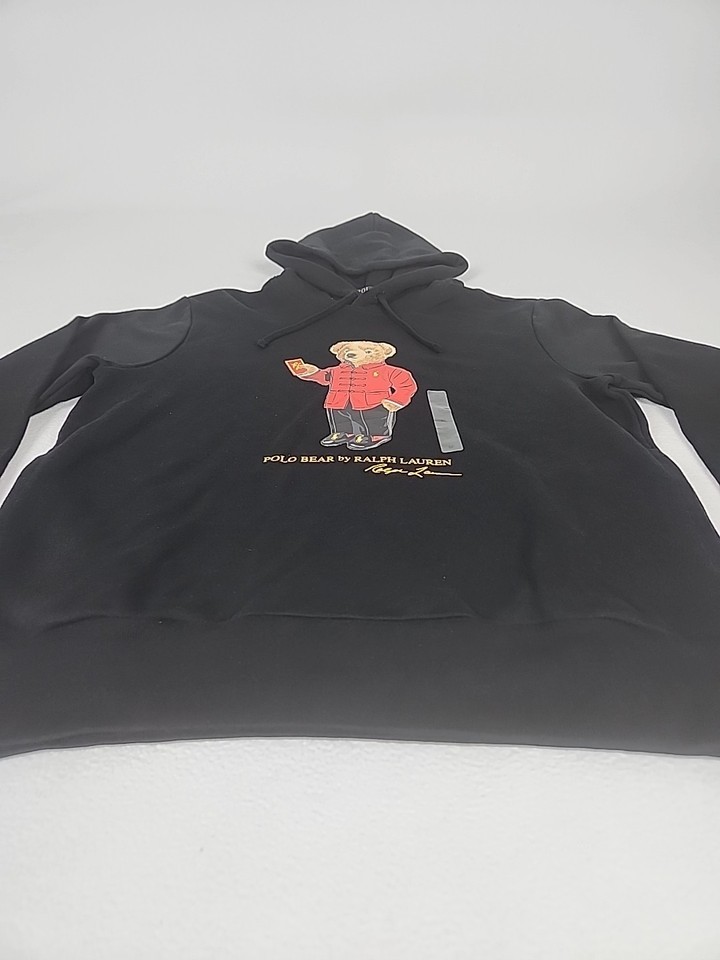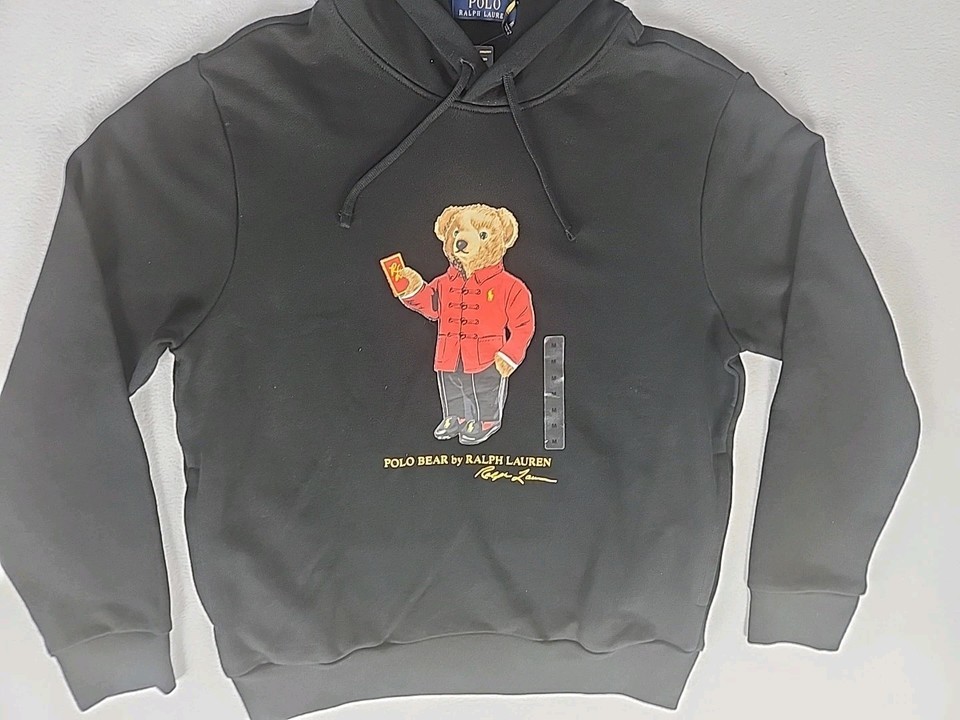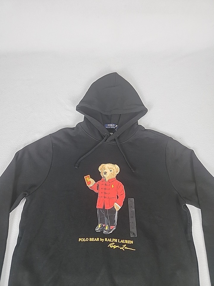 Polo Ralph Lauren Polo Bear Pullover Hoodie Sweatshirt Size M Mens Black Pockets