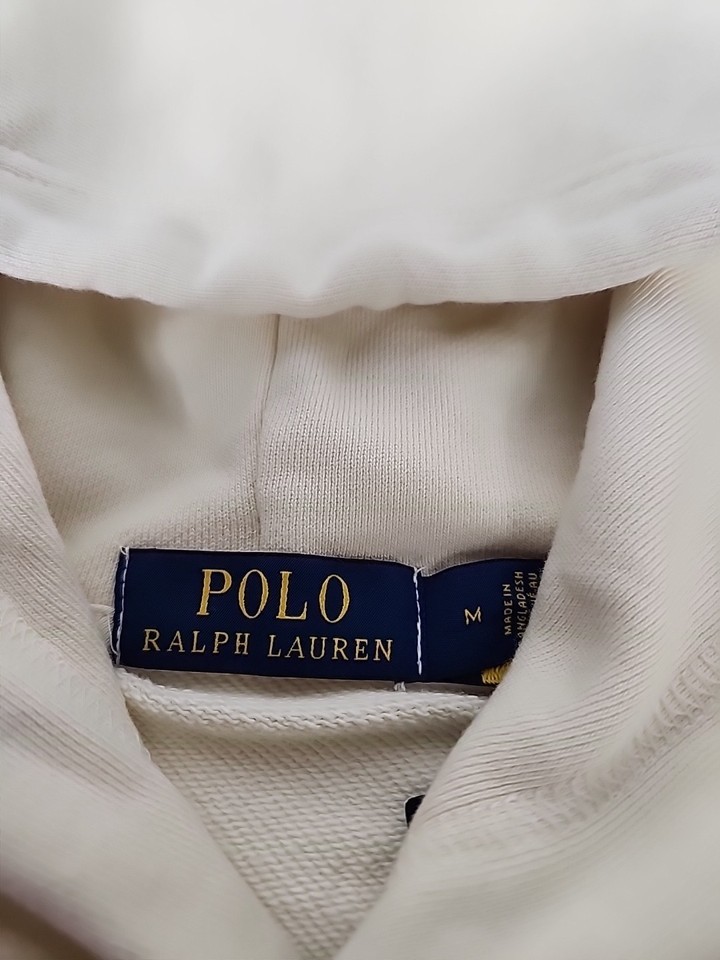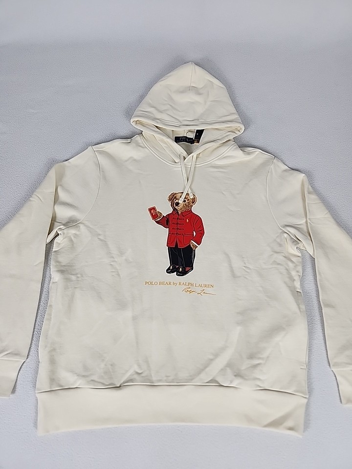 Polo Ralph Lauren Polo Bear Hoodie Sweatshirt Men's M Beige Off White Pullover