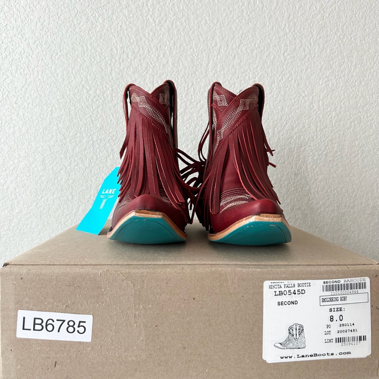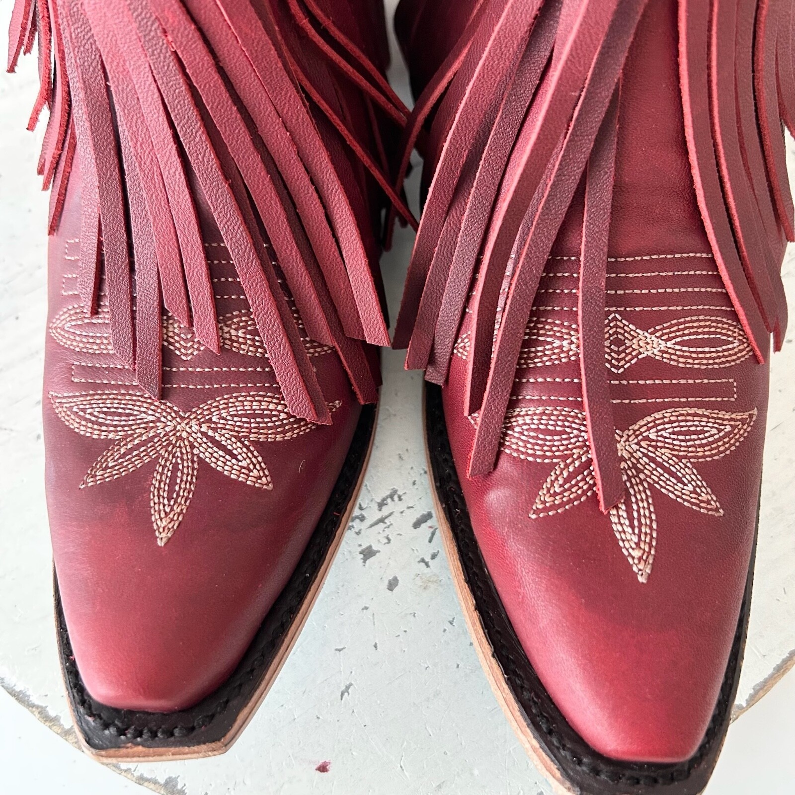 Lane SENITA FALLS Womens Cowboy Bootie 8 Red Fringe Western Short Cowgirl Boots