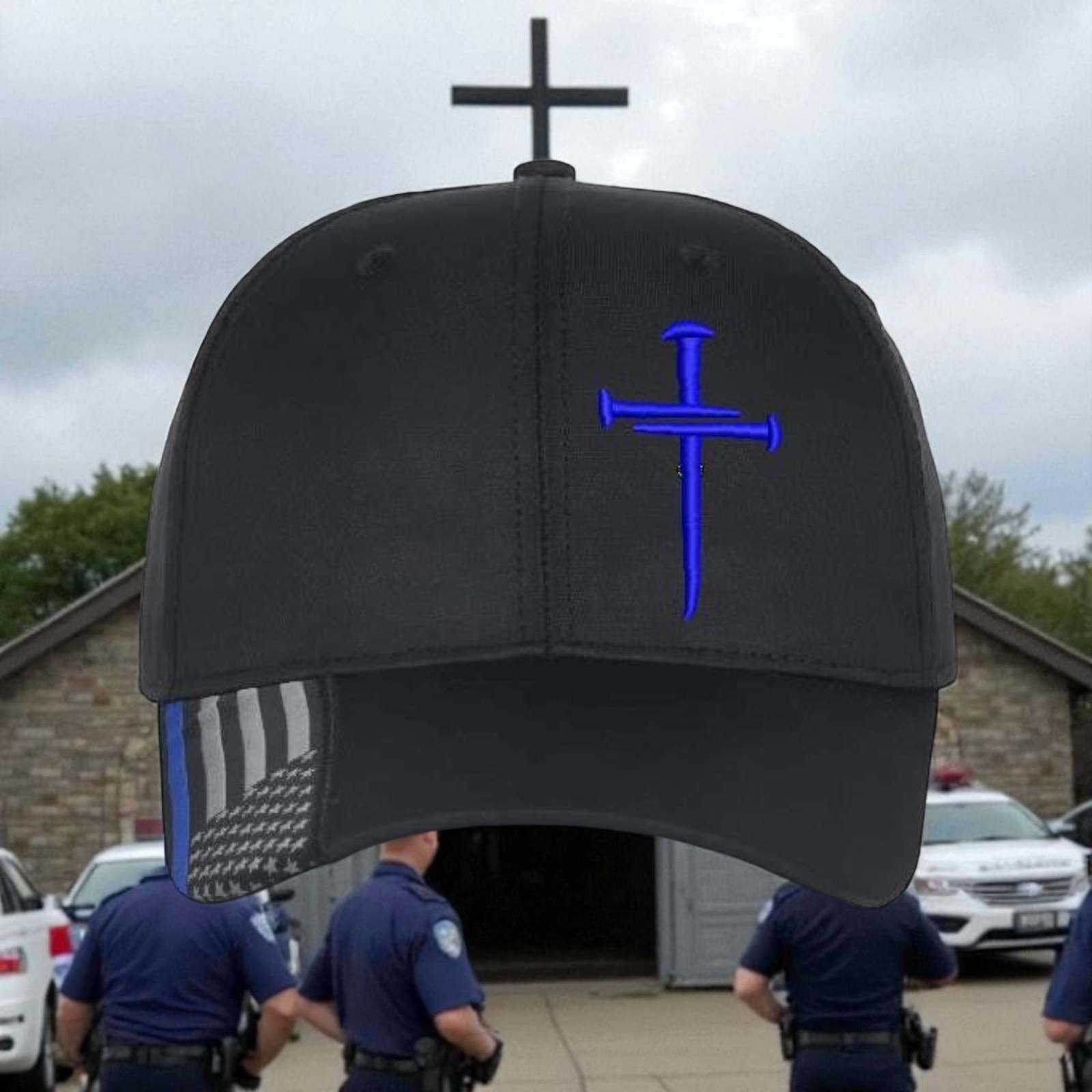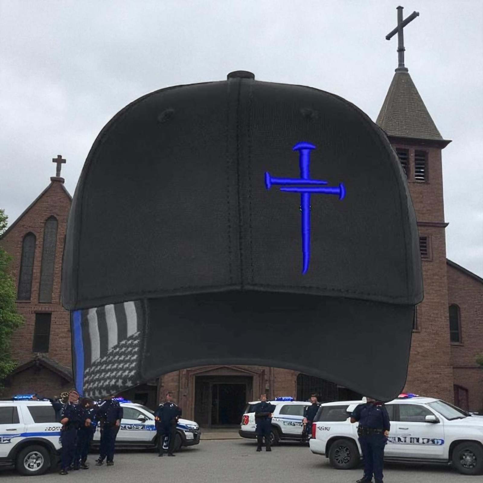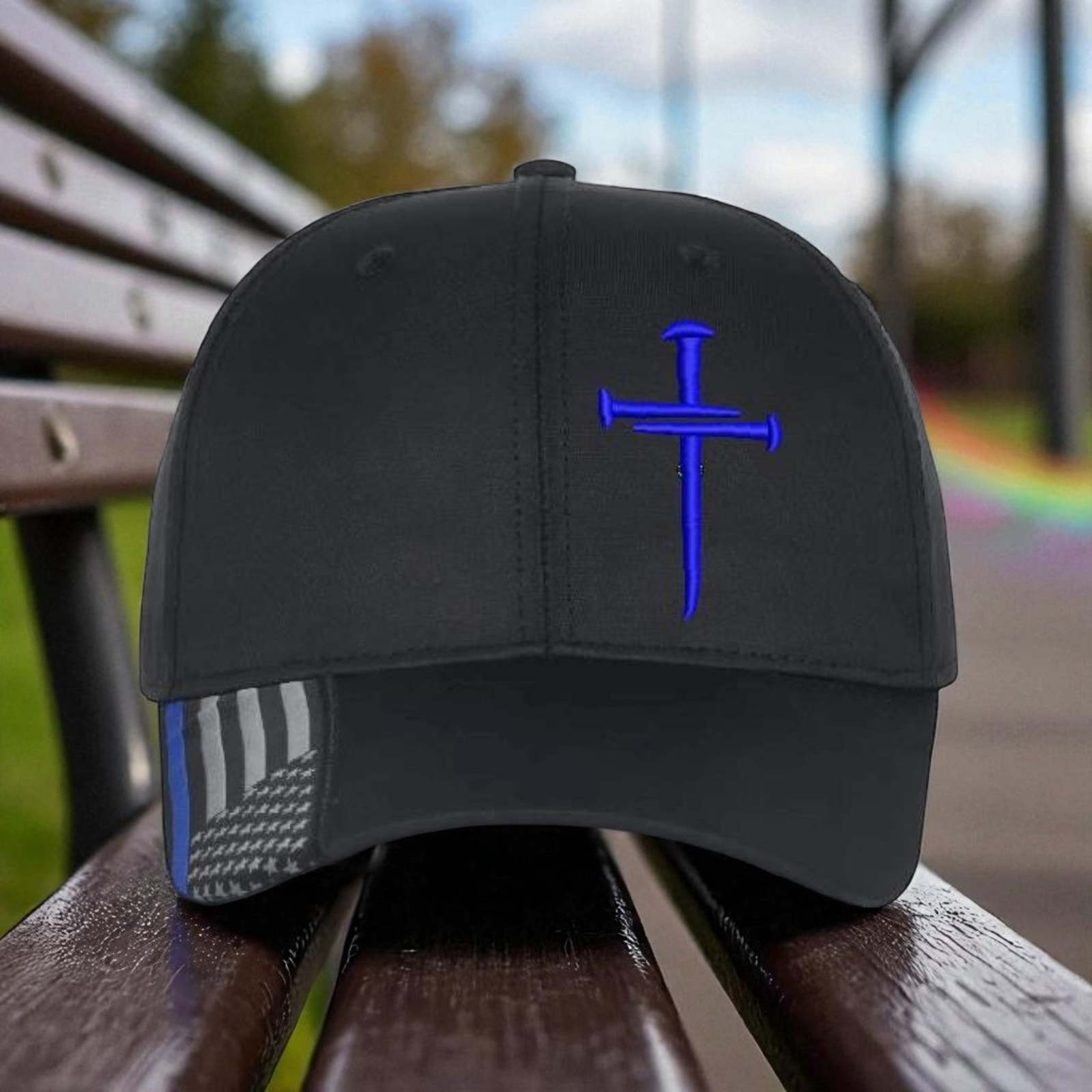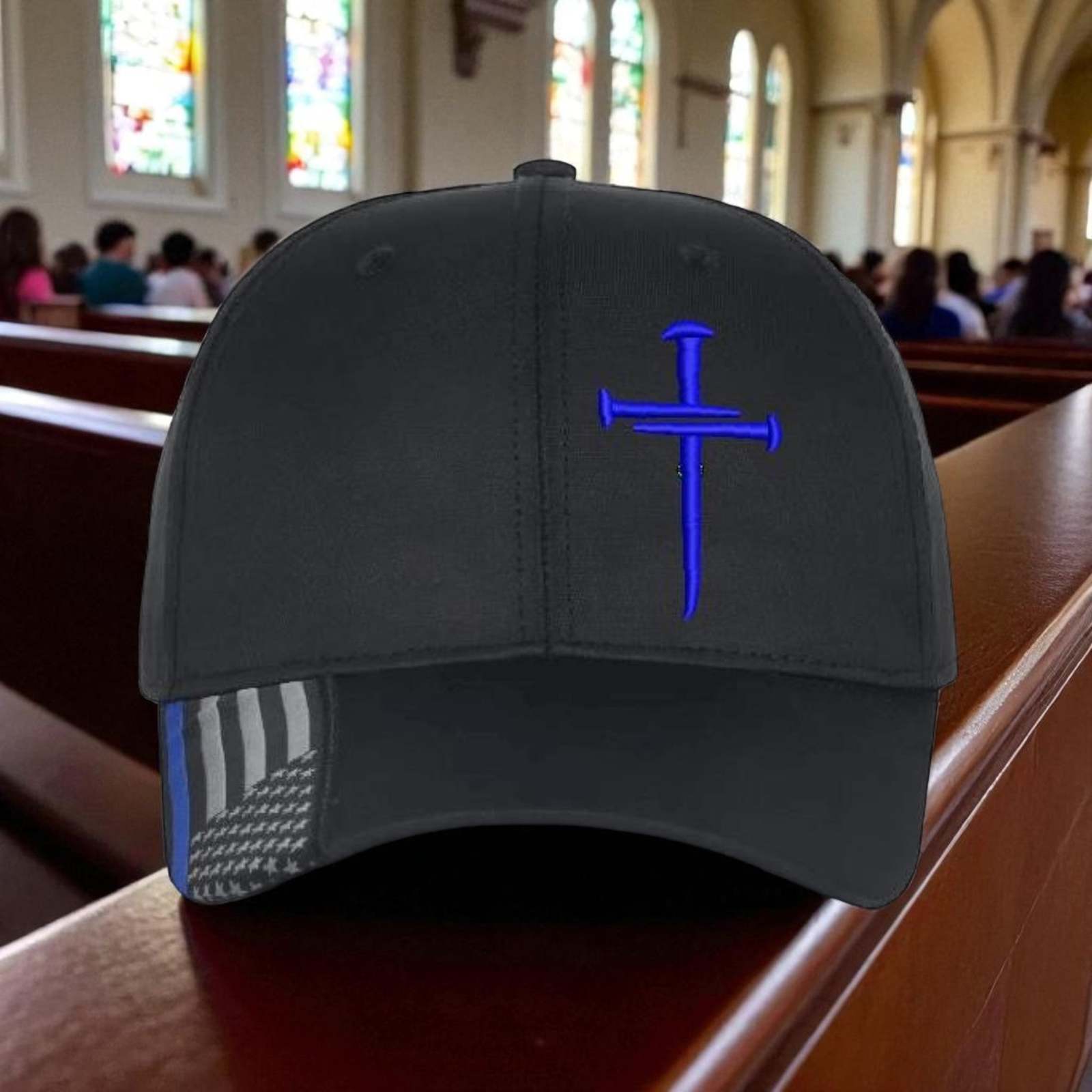 Christian Hats for Men Women Jesus 3 Nail Cross CUSTOM BLUE Line Hat BLUE Cross